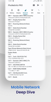 PhoNetInfo — это полезный инструмент, который предоставляет подробную информацию об аппаратной части и программной среде вашего смартфона, а также о параметрах мобильной сети. Приложение позволяет в реальном времени отслеживать ключевые характеристики устройства и получать полную картину его текущего состояния.
