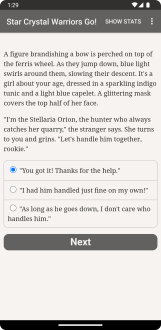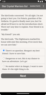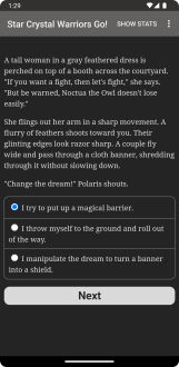 Новелла сочетает глубину литературного произведения и свободу игры: здесь нет графики и звуковых эффектов, но есть 250 000 слов и сотни вариантов ответов, оживающих благодаря твоей фантазии. Ты можешь выбирать, как развивать отношения, какие силы использовать и каким будет твой финал. Любители магических девочек, интерактивных романов и просто чтения найдут в игре вдохновение — будто перелистываешь страницы собственной судьбы. Каждое решение превращается в ветвь, ведущую к уникальной развязке. Попробуй Star Crystal Warriors Go и дай волю воображению, чтобы создать свою магическую легенду.