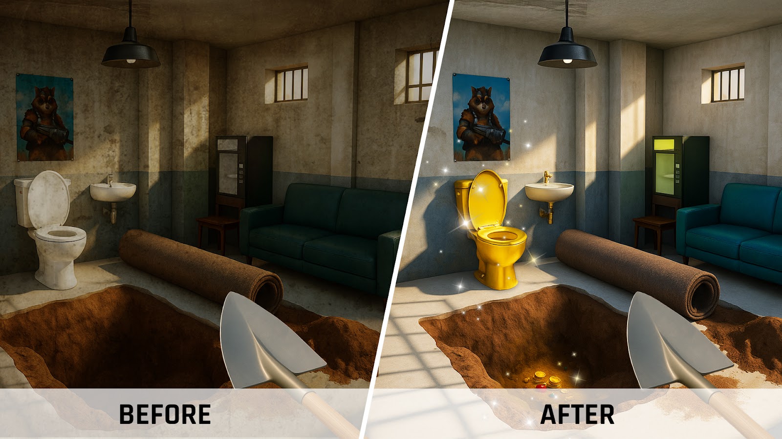Prison Escape: Dig & Run – симулятор побега из тюрьмы, где ты роешь туннели ложкой или киркой, собираешь ресурсы и удираешь от стражи. Ты планируешь путь, улучшаешь инструменты, избегаешь патрулей. За недолгий отрезок ты ковыряешь пол под ковром, подбираешь верёвку в камере, роешь в сторону стены или прячешься от охранника в тени. Каждое действие приближает к свободе, а тюрьма оживает – стены гудят, шаги эхом отдаются. Сцены полны азарта, как прорыв через тупик или внезапный рывок на поверхность. Ты ощущаешь риск каждого удара лопатой.