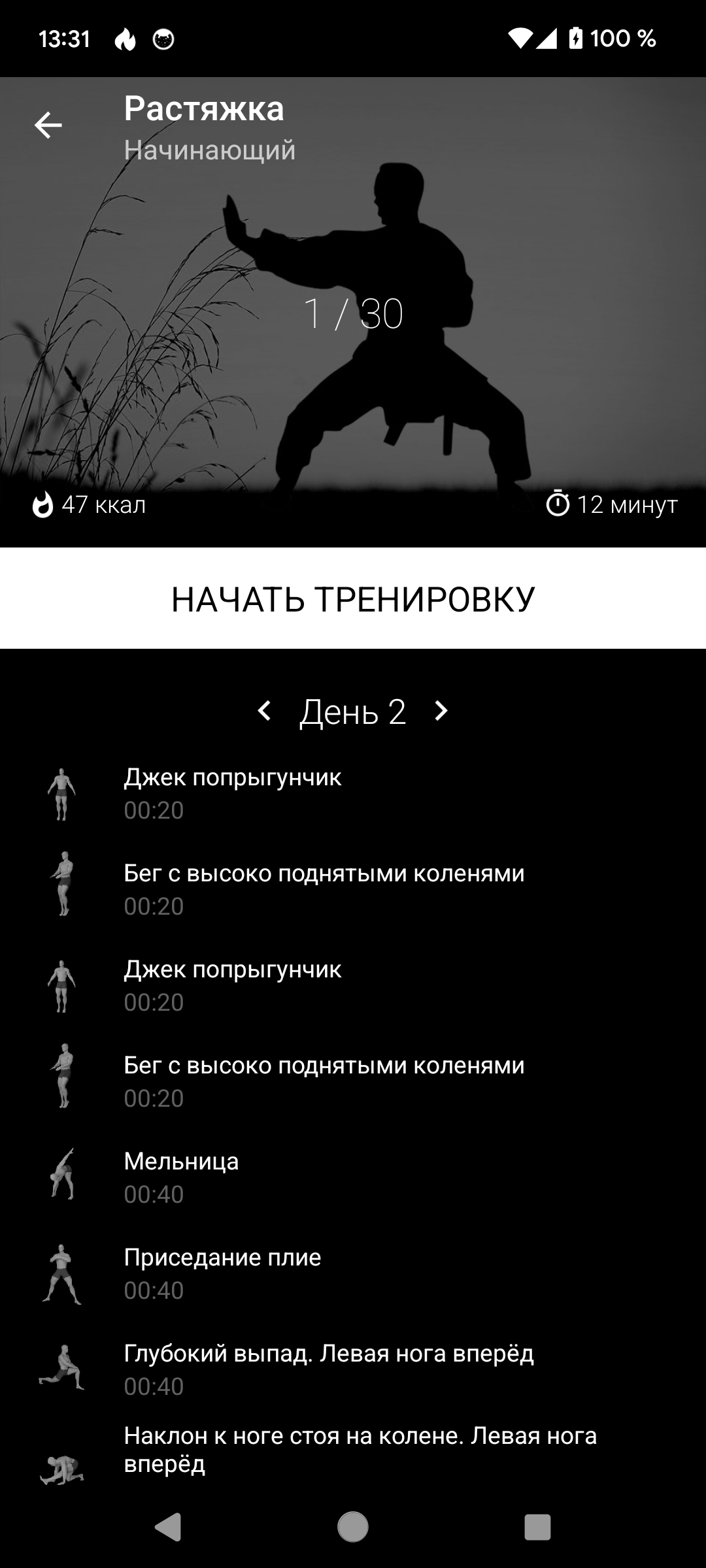 Приложение радует 30-дневными марафонами с уровнями и анимацией упражнений с голосом для точности. Ты прогрессируешь через регулировку нагрузки – от лёгкой до интенсивной – отслеживание истории занятий для мотивации, объединение с тренировками для роста силы и диапазона движений. Детали в удобном интерфейсе без рекламы, множестве упражнений от шпагата до плечевых растяжек. Добавь стратегии в ежедневные сессии, ощути радость от новых приёмов. Попробуй этот тренажёр сам и стань гибким бойцом.