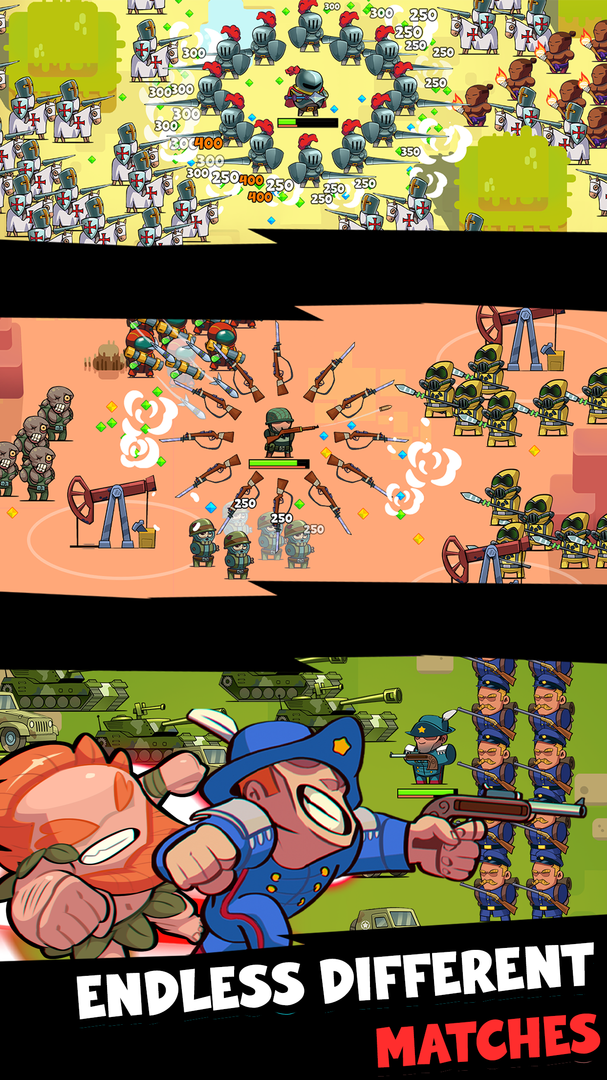 Игра предлагает 200+ уровней с уникальными боссами и инвестиционные карты для бонусов на основе эпох. Ты прогрессируешь через разблокировку 100+ навыков, от мечей до дронов, развитие цивилизации верой и популярностью, комбинирование оружия для мощи. Различные категории с таблицами лидеров добавляют соревнования. Детали оживают в разнообразных эпохах, где стратегия решает исход, множестве артефактов для тактик. Погрузись в этот хаос сам и сделай империю непобедимой.
