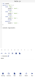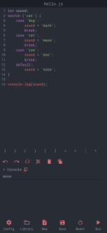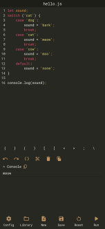 Редактируй и запускай jаvascript код на мобильном с подсветкой синтаксиса