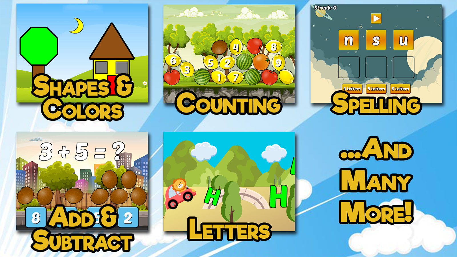Preschool & Kindergarten Games — это коллекция из 30+ образовательных мини-игр где твой малыш осваивает буквы числа формы и цвета в уютном мире с животными. Ты запускаешь приложение ребенок тапает по экрану чтобы собрать пазл с буквой A или посчитать яблоки на ветке. За пять минут ты проходишь урок по распознаванию эмоций на личиках или смешиваешь цвета чтобы раскрасить слона — один правильный выбор и стикер прилипает к доске а ребенок хихикает от веселого звука. Ты переходишь к следующей задаче с месяцами или паттернами и видишь как уроки строятся по школьной программе.