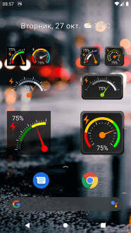 Gauge Battery Widget — это виджет для Android где ты ставишь циферблат на домашний экран чтобы отслеживать заряд в реальном времени. Ты долго жмёшь на экран добавляешь маленький вариант и видишь стрелку на 75% — она поворачивается плавно а графика рисует дугу заряда. За пять минут ты меняешь размер на большой для планшета тапаешь по нему чтобы открыть настройки и вот статус в строке состояния мигает с процентом. Ты корректируешь цвет под тему и чувствуешь как виджет оживает с каждым тиком.