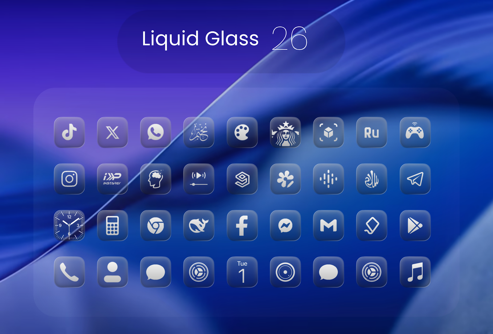 Liquid Glass 26 Icon Pack — это пачка иконок для Android в glassmorphism-стиле с эффектом жидкого стекла. Ты устанавливаешь Nova Launcher применяешь тему и смотришь как приложения меняют вид — галерея превращается в полупрозрачный шар с бликами. За пять минут ты листаешь каталог выбираешь альтернативу для камеры и жмёшь применить — иконка оживает с тенями подстраиваясь под обои а динамический календарь показывает даты. Ты переключаешь лаунчер и вот экран выглядит свежо заставляя переставить виджеты для баланса.