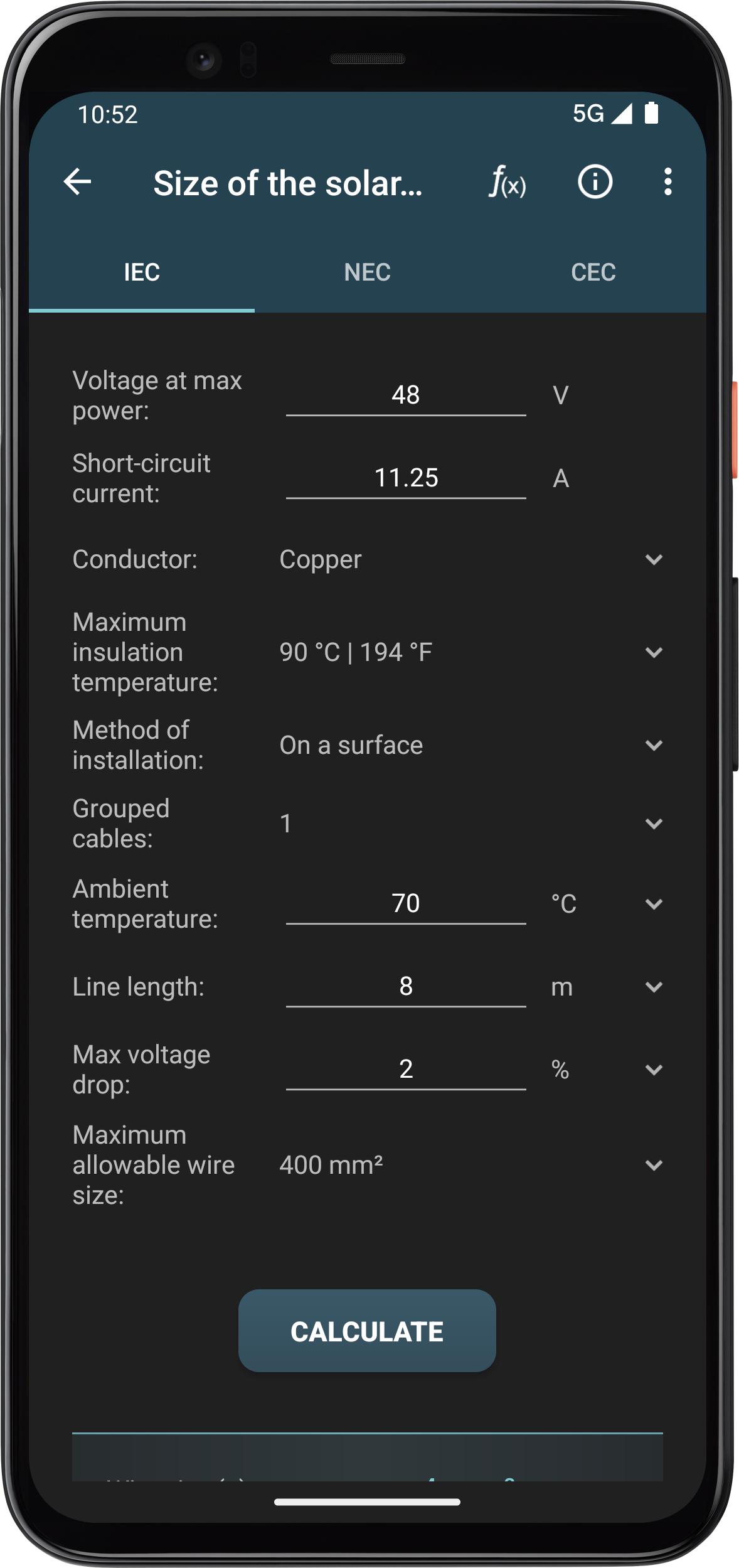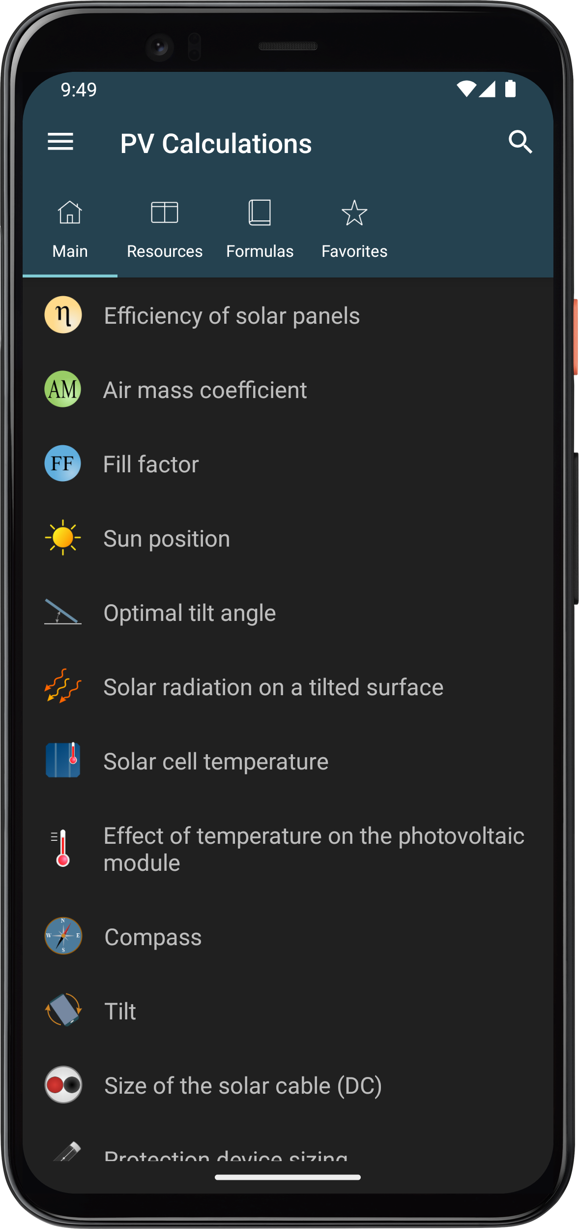 Photovoltaic Calculations — это утилита для проектирования фотоэлектрических систем где ты вводишь данные о панелях и локации чтобы получить точные оценки. Ты открываешь калькулятор угла наклона жмёшь GPS для позиции и видишь оптимальный угол — 35 градусов для твоего города. За пять минут ты рассчитываешь излучение на наклонной поверхности вводишь мощность модуля и слышишь как приложение выдаёт ежедневную энергию — один ввод потерь от температуры и итог корректируется на 15 процентов. Ты переходишь к размеру кабеля проверяешь короткое замыкание стринга и вот схема готова с защитой от перегрузки.