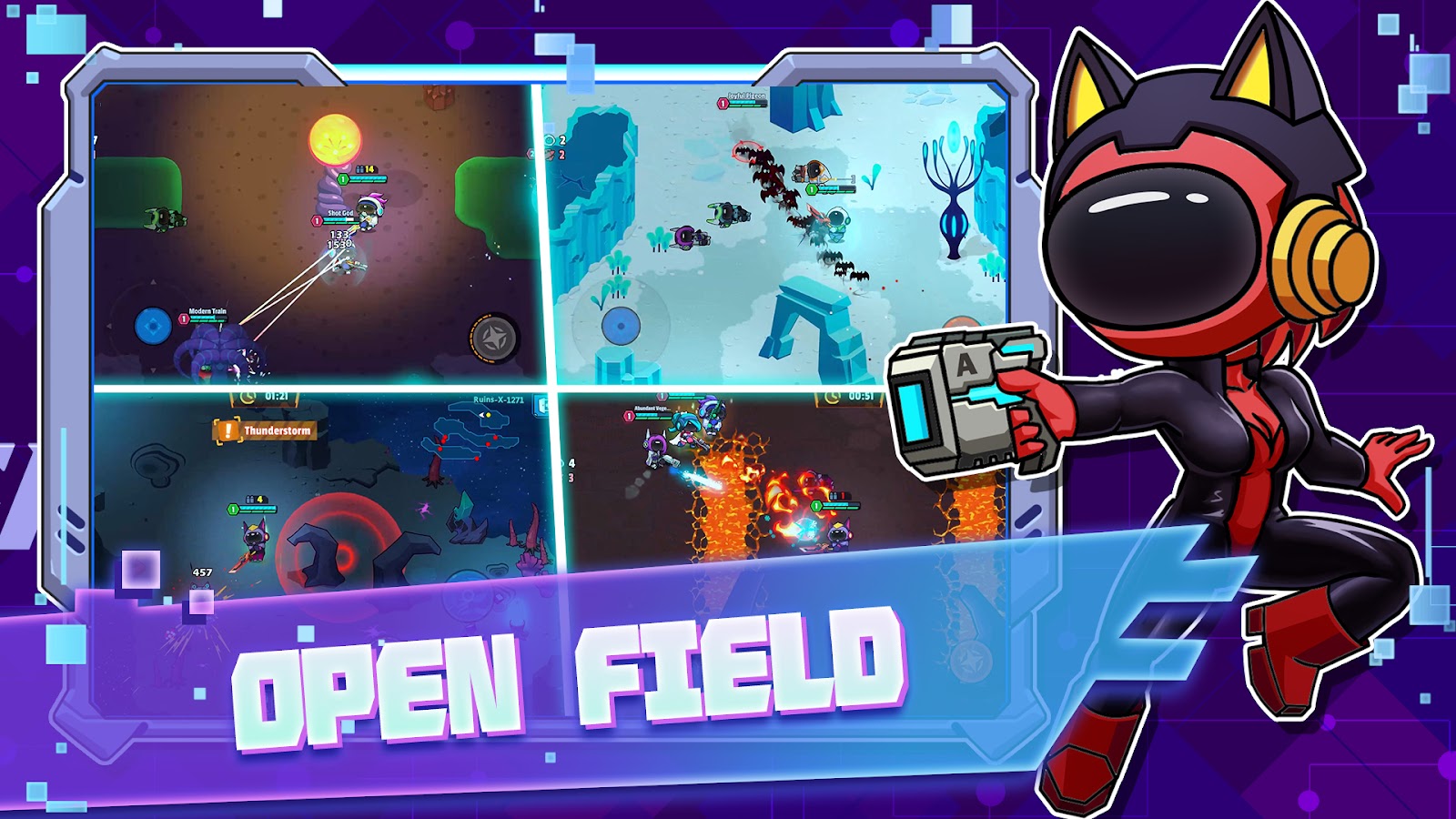 Space Hunger: Battle Royale – королевская битва в космосе, где ты прыгаешь с корабля на планету, собираешь оружие, эволюционируешь его для усиления, комбинируешь навыки героев вроде «Призрачного убийства» для засад. Ты мчишься через вулканический ландшафт, уклоняешься от лавы, стреляешь по врагам из улучшенной винтовки, активируешь «Теневую летучую мышь» для скрытного подхода. Каждое решение переламывает бой, а галактика оживает – погодные изменения меняют тактику. Сцены полны хаоса, как прорыв через токсичный туман под градом молний или захват зоны в экстремальном холоде. Ты чувствуешь себя выжившим в вихре космических битв.