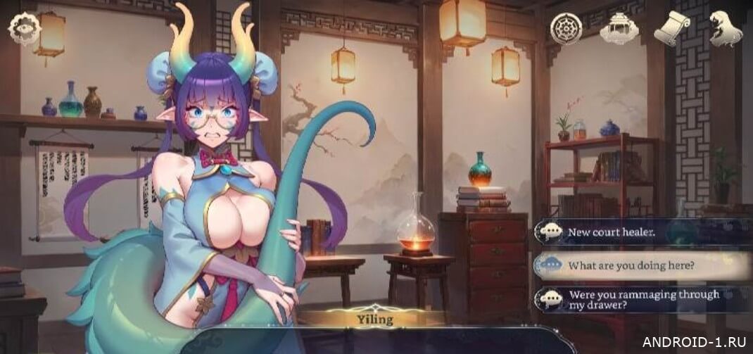 Harem Fantasy – визуальный роман в фэнтезийном мире, где ты придворный целитель императорского гарема, отслеживаешь здоровье фавориток, раскрываешь заговоры, делаешь выборы для влияния на события. Ты осматриваешь покои одной из дам, используешь зелье для лечения в спальне, подслушиваешь разговоры в саду, избегаешь ловушек в коридоре. Каждое слово меняет баланс сил, а двор оживает – свечи мерцают, шепот эхом отзывается. Сцены полны напряжения, как ритуал под луной в заброшенном храме или дуэль взглядов с коварной обольстительницей в бальном зале.