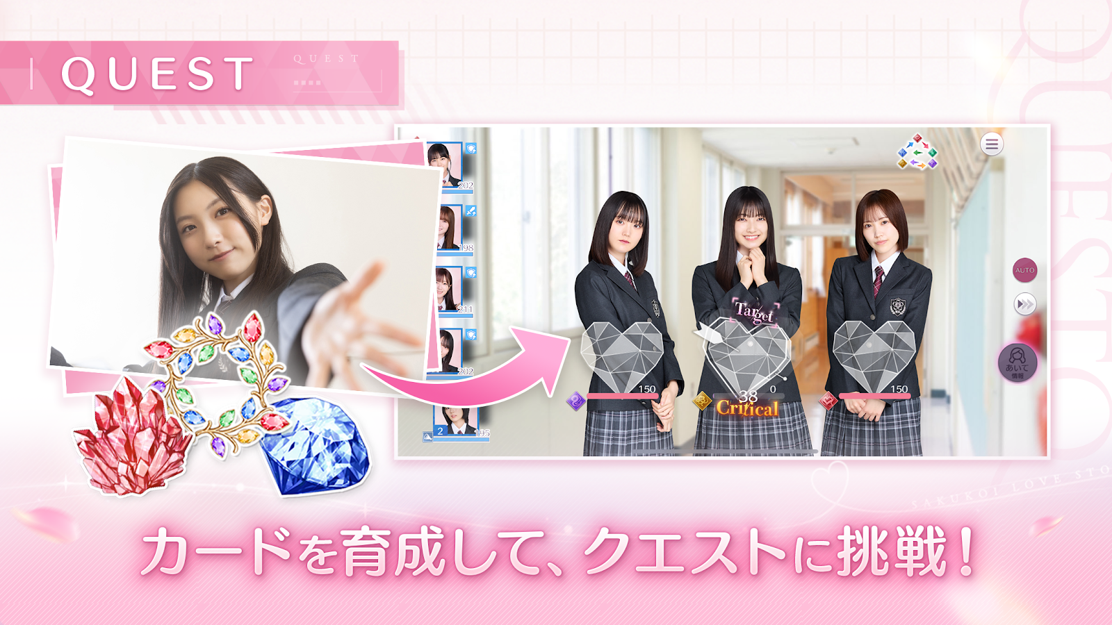 櫻坂46公式 サクコイ — это мобильная dating sim где ты учишься в частной Академии Сакуразака и плетёшь романтические нити с участницами Sakurazaka46. Ты гуляешь по школьным коридорам, болтаешь с девушкой из группы на уроке и выбираешь фразу — один комплимент, и она краснеет, приглашая на фестиваль. За пять минут ты отвечаешь в диалоге, собираешь подарки вроде брелка и видишь как её улыбка теплеет — ты переходишь к следующей сцене, где она делится секретом о песне, и сердце стучит от намёка на свидание.