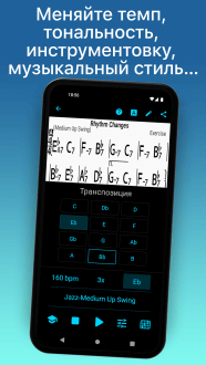 iReal Pro — приложение для музыкантов где ты создаёшь аккорды трека и запускаешь бэк-трек от джаз-бэнда до рок-группы. Ты вводишь последовательность Am - Dm - E7, выбираешь свинг-стиль и жмёшь плей — пианино вступает с Rhodes, бас качает ритм, а барабаны держат темп на 120 BPM. За пять минут ты меняешь тональность на транспонированную версию, добавляешь гитару для соло и вот виртуальный джем оживает — один луп на бридж и ты репетируешь импровизацию, чувствуя как аккорды ложатся под пальцы. Ты пробуешь блюз с реальными драм-треками, слышишь вибрафон в балладе и переходишь к кастомному миксу где органа с акустикой рождает уютный саунд.