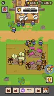 Farming Warriors: Idle TD — idle tower defense где ты становишься торговцем оружия для злых фермеров, отбивающих урожай от прожорливых жуков. Ты сидишь в сарае, видишь как первый крестьянин вбегает с вилами и тапаешь на дробовик — он хватает ствол, мчится на грядку и палит в толпу насекомых, разрывая панцири. Ты распределяешь бензопилы по полям, чувствуешь запах пороха и вот жуки отступают, оставляя капусту целой — один апгрейд на картофельную пушку и фермеры доминируют, а монеты сыплются от спасённого урожая.