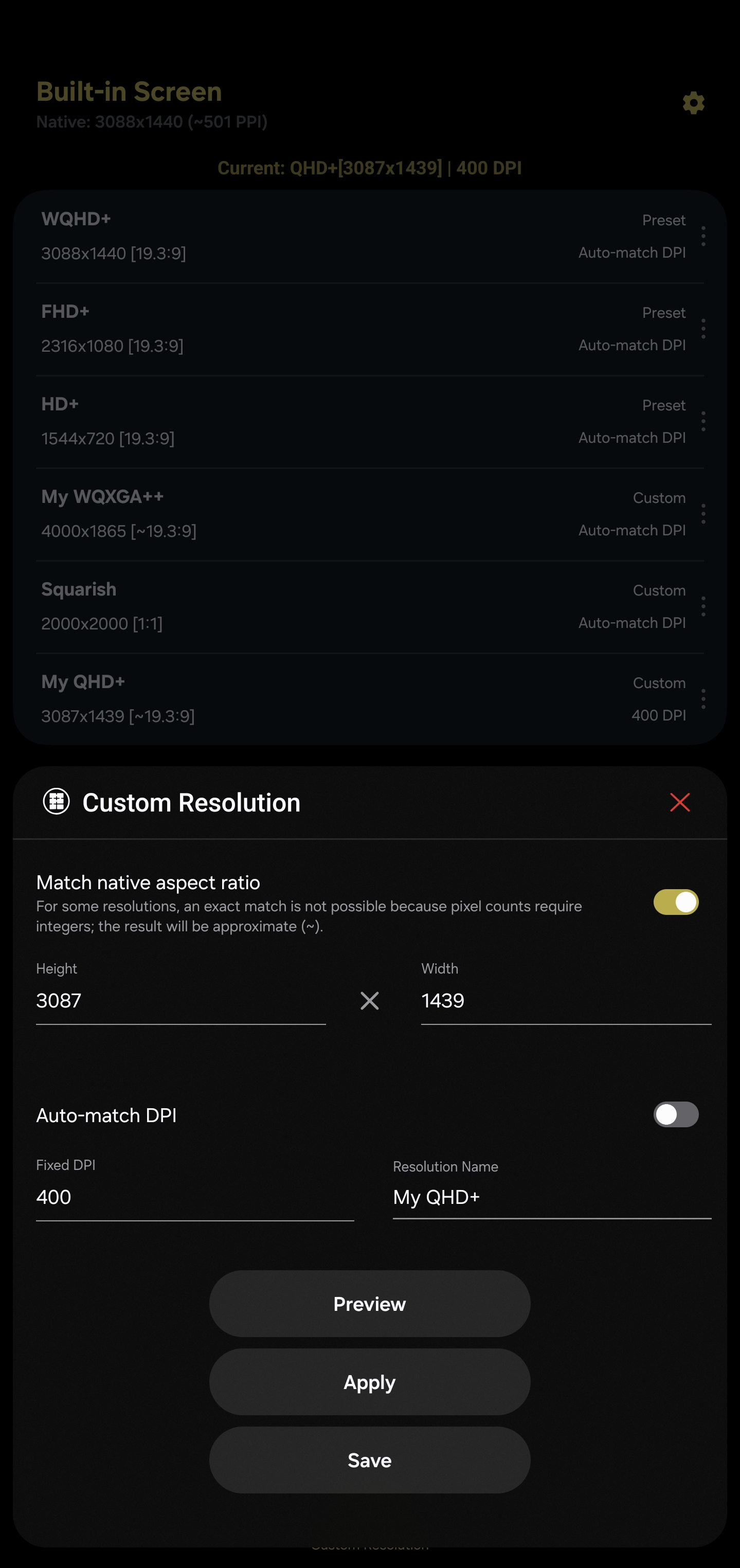 Настрой разрешение экрана и DPI одним свайпом для идеальной подгонки