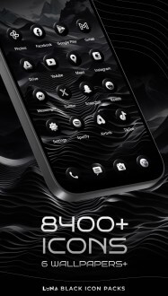 Luna Black Icon Pack — пачка иконок для Android в тёмном глянцевом стиле где ты меняешь экран на мистический блеск. Ты открываешь Nova launcher применяешь тему и видишь как галерея оживает — чёрный квадрат с отражением переливается на обоях. За пять минут ты листаешь каталог тапаешь на вариант для музыки и жмёшь применить — иконка ложится с глянцем а маскировка покрывает редкие приложения. Ты зумишь на блеск чтобы поймать глубину и вот экран пульсирует тьмой — один свайп по лаунчеру и всё течёт гладко, заставляя переставить виджеты для баланса.