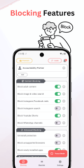 BlockerHero — надёжный щит от порно и вредного контента, где ты настраиваешь фильтры для браузера и соцсетей, чтобы день шёл без отвлечений. Ты открываешь приложение, активируешь блокировку и видишь как подозрительные сайты отлетают — YouTube очищается от нежелательного, а фокус-режим запускает таймер на работу. За пять минут ты добавляешь партнёра-аккаунтабилити — один свайп по настройкам и уведомления о попытках обхода приходят тихо.