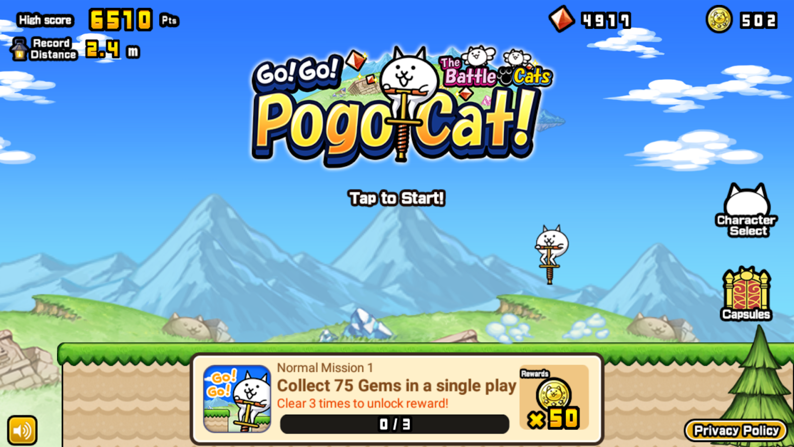 Go! Go! Pogo Cat — бесконечный jumper в мире Battle Cats где ты Pogo Cat на пружинном ходу прыгаешь касанием уворачиваешься от опасностей летишь вперёд собираешь Cat Pixies для очков экстра-прыжков и бонусов. В забеге timely тапаешь чтобы подпрыгнуть выше подбираешь предметы набираешь дистанцию. Каждая попытка полна динамики. Ты быстро втягиваешься в ритм чувствуя адреналин где timing решает рекорд. Попробуй один полёт и поймёшь viral шарм без IAP.