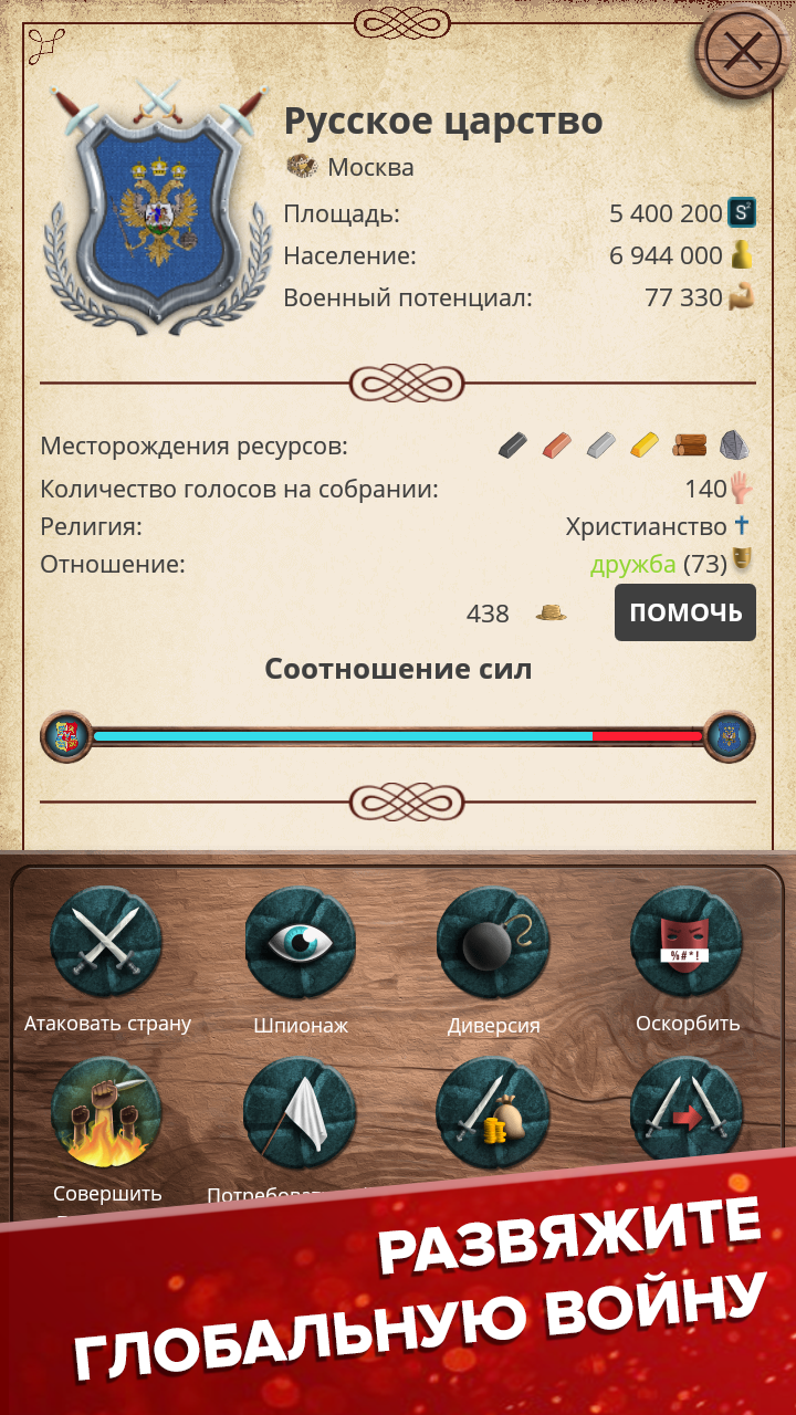 ЭК Симулятор Средневековья PRO - Эпоха Колонизации — оффлайн геополитическая стратегия в Европе средневековья с более 40 государств от Римской империи до варваров. Ты правитель одного из гигантов строишь армию и флот проводишь шпионаж диверсии набеги на соседей для ресурсов аннексии защищаешься от вторжений заключаешь пакты о ненападении производишь пищу ресурсы снаряжение торгуешь излишками покупаешь дефицит издаёшь законы выбираешь религию назначаешь министров по флоту армии сбору дани строительству торговле. Петля: проверяешь производство торгуешь дипломатируешь воюешь колонизируешь борешься с сепаратизмом на завоеваниях участвуешь в международных собраниях голосуешь за предложения. Ты быстро втягиваешься в роль правителя чувствуя геополитический накал где тактика решает судьбу империи. Попробуй один набег и поймёшь почему миллионы игроков по планете фанатеют от этой глубины.