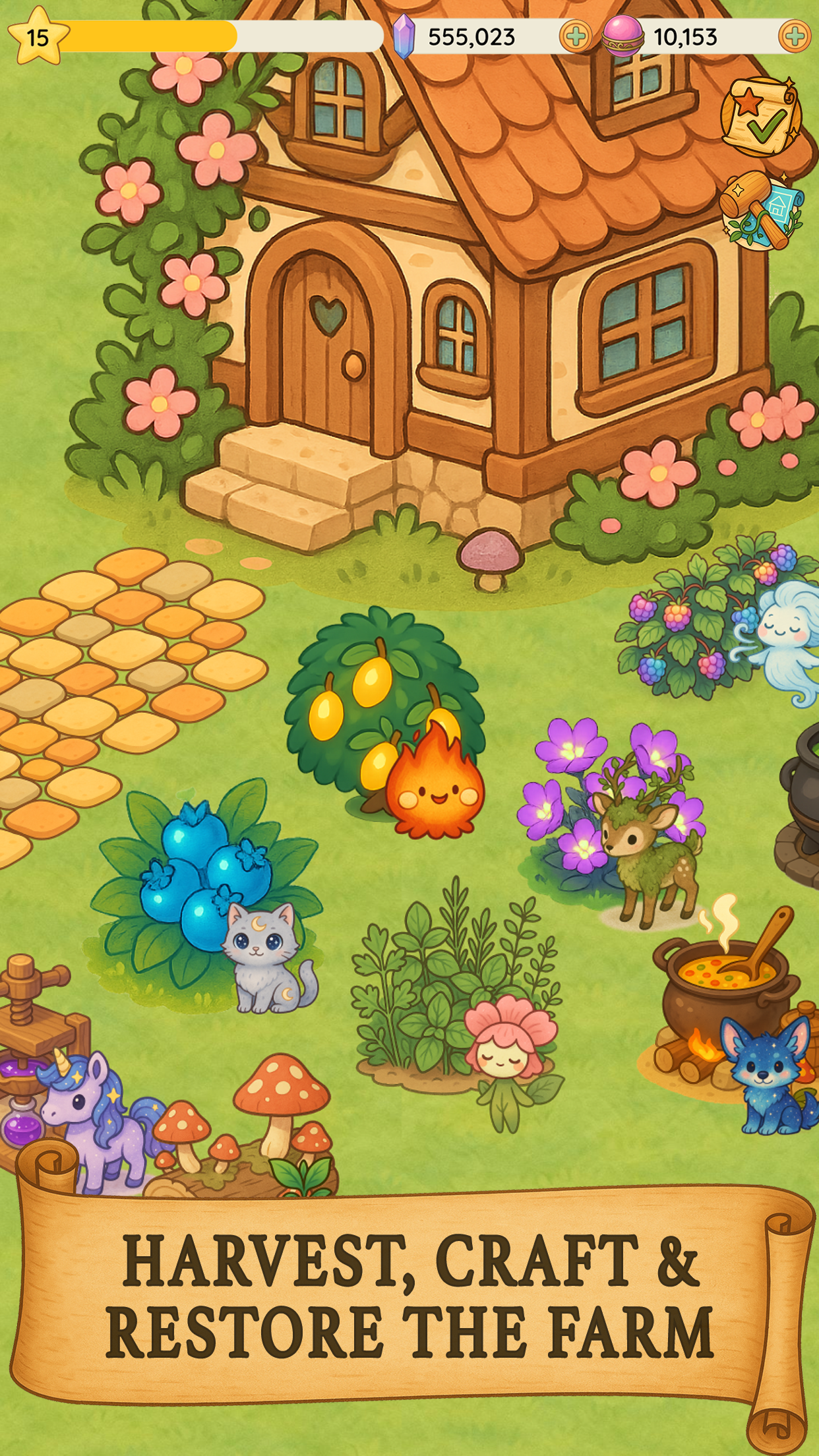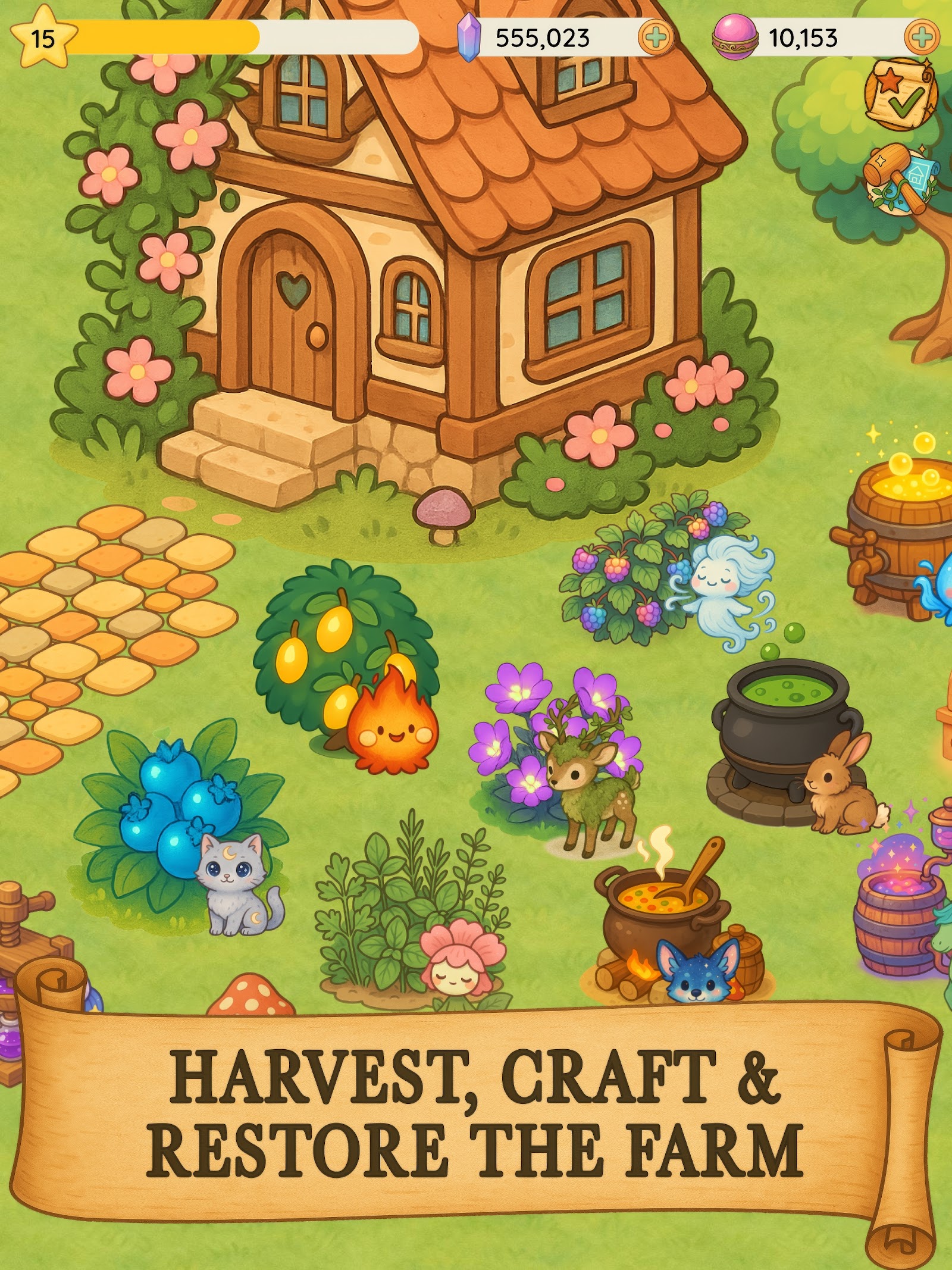 Evergrove Idle: Grow Magic — успокаивающий story-rich idle-кликер с enchanted farming в forgotten волшебной роще. Ты новый смотритель сажаешь мерцающие семена собираешь светящиеся фрукты грибы звездоцветы крафтишь зелья чары пробуждаешь древнюю магию под землёй автоматизируешь сбор с очаровательными животными-фамильярами. Возвращайся к урожаю оффлайн открывай трогательные сюжетные сцены с тайнами воспоминаниями хранителем и таинственной романтикой. Каждая сессия полна релакса ты быстро втягиваешься в ритм роста чувствуя уют где один урожай раскрывает кусочек лора. Попробуй посадить первые семена и поймёшь почему это идеальный cozy escape.