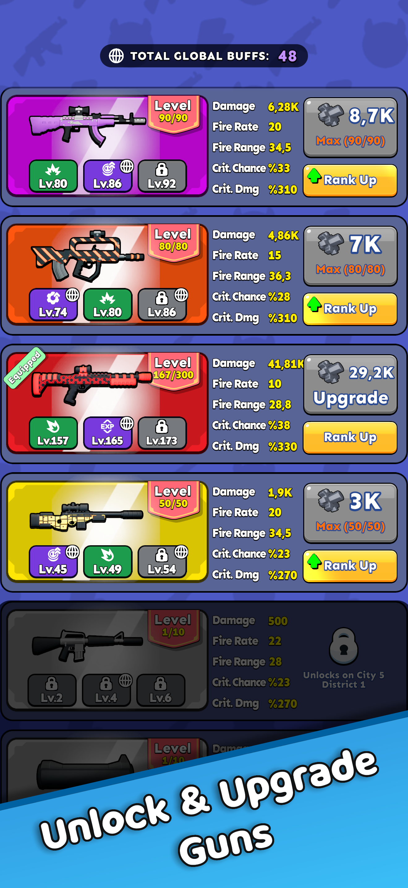 Дерево талантов позволяет кастомизировать стиль от агрессивного штурма до хитрых тактик а главари дают суперспособности усиливая команду после прогресса. Развивай стратегию разблокируй арсенал от пулемётов до гранатомётов собирай ресурсы для перманентных бустов где неожиданные засады и боссы добавляют перца мотивируя экспериментировать билдами и раннерами. Легко освоить насыщенно действием вернись чтобы создать лучшую банду и править улицами.