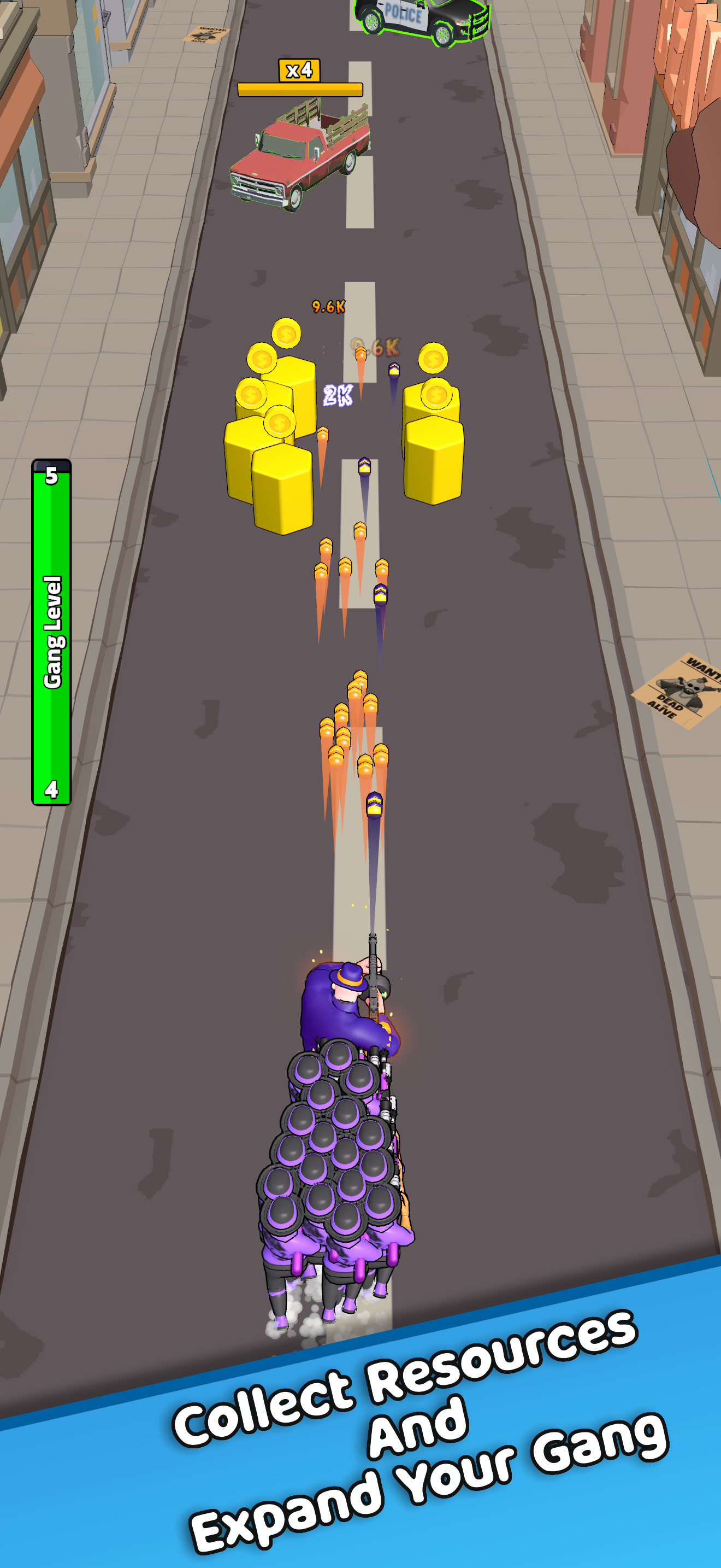 Gang Up — уличный раннер-бrawler где ты лидер банды бежишь по городу набираешь членов команды на ходу ломаешь ящики за ресурсами стреляешь из мощного оружия прорываешься сквозь врагов. Ты стартуешь с пистолетом бежишь вперёд тапаешь чтобы стрелять собираешь подкрепление апгрейдишь арсенал нанимаешь легендарных главарей с уникальными способами. В 5-минутной сессии растишь толпу сносишь всё на пути чувствуя хаос где толпа множится а пушки рвут. Ты быстро втягиваешься в ритм представляя себя боссом улиц где один апгрейд меняет доминацию. Попробуй один забег и поймёшь почему взрывные сюрпризы затягивают на часы.