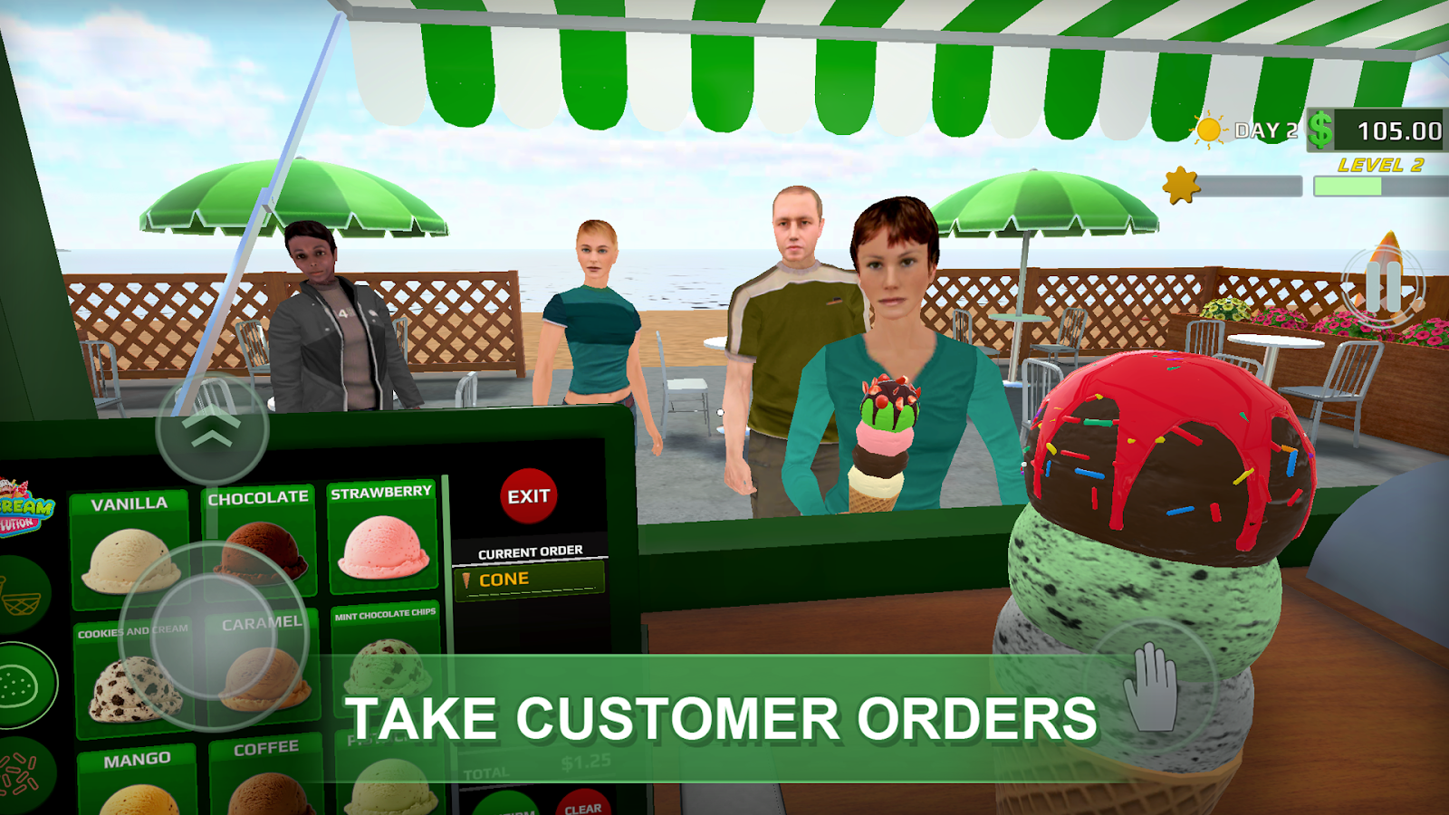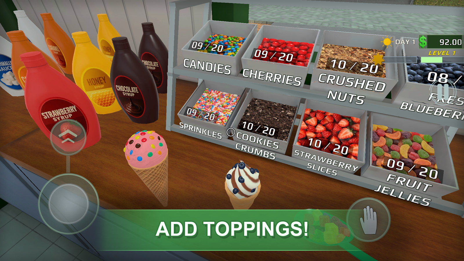 Готовь мороженое клиентам наливай вкусы добавляй топпинги и кастомизируй магазин