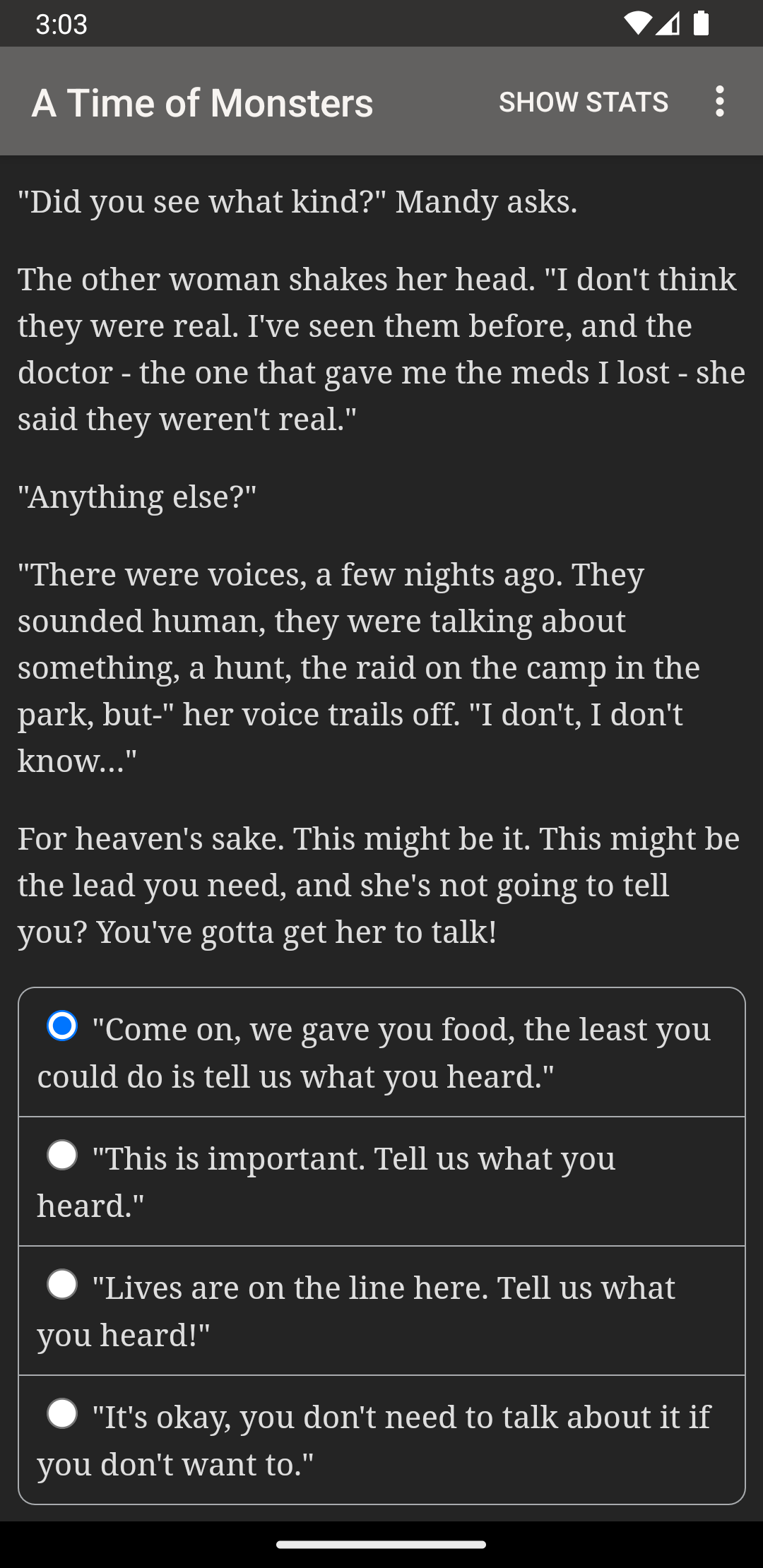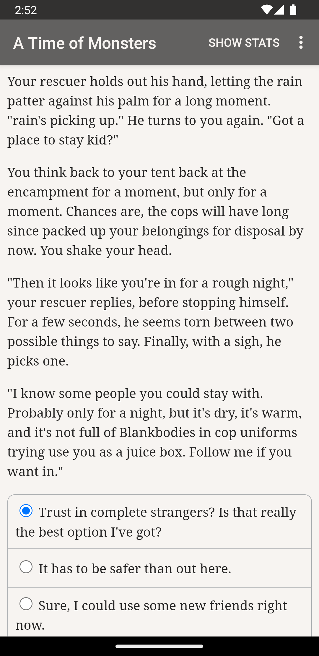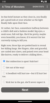 Hunter: A Time of Monsters – интерактивный роман в сеттинге World of Darkness. Ты бездомный в трущобах Ванкувера где вампиры правят ночью а люди выживают на грани. В каждом эпизоде ты читаешь нарратив выбираешь диалоги или действия вербуешь союзников из банд или тайных обществ влияешь на альянсы и строишь восстание. За пять минут ты можешь завербовать гангстера заключить сделку с охотником почувствовать накал интриг и увидеть как сюжет поворачивает к предательству или триумфу. Это затягивает ведь каждый выбор меняет отношения а 1 миллион слов раскрывают глубину мира Тьмы.