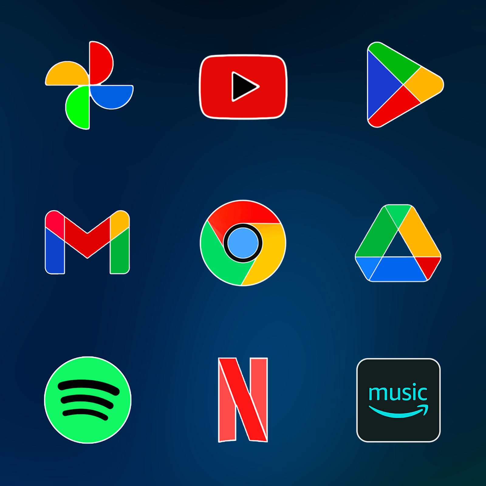 Оформи экран кислородными иконками с неоновыми градиентами и 3D-эффектами