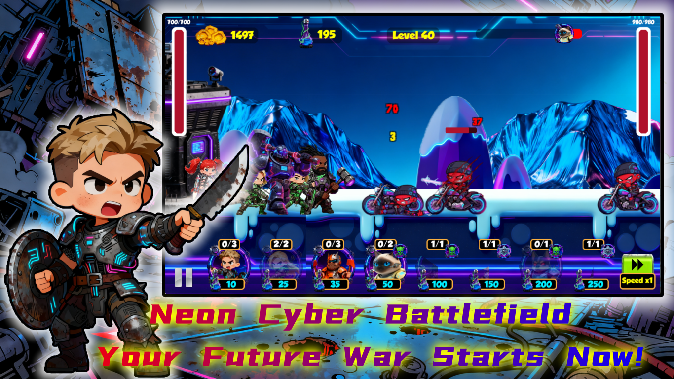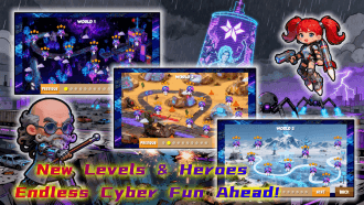 Cyber Rush Neon Tower Wars – чиби-защита башен в киберпанковском будущем, залитом неоном. Ты размещаешь героев на поле – бойцы ближнего боя, стрелки, танки – и тянешь линию обороны против роботов и био-монстров. Каждый ход меняет баланс: враги прорываются или твои юниты контратакуют ты комбинируешь классы апгрейдишь способности. За пять минут ты отобьёшь волну, сломаешь вражеский фланг, увидишь как неон вспыхивает от взрывов – и поймёшь, что один удачный микс переворачивает всё.