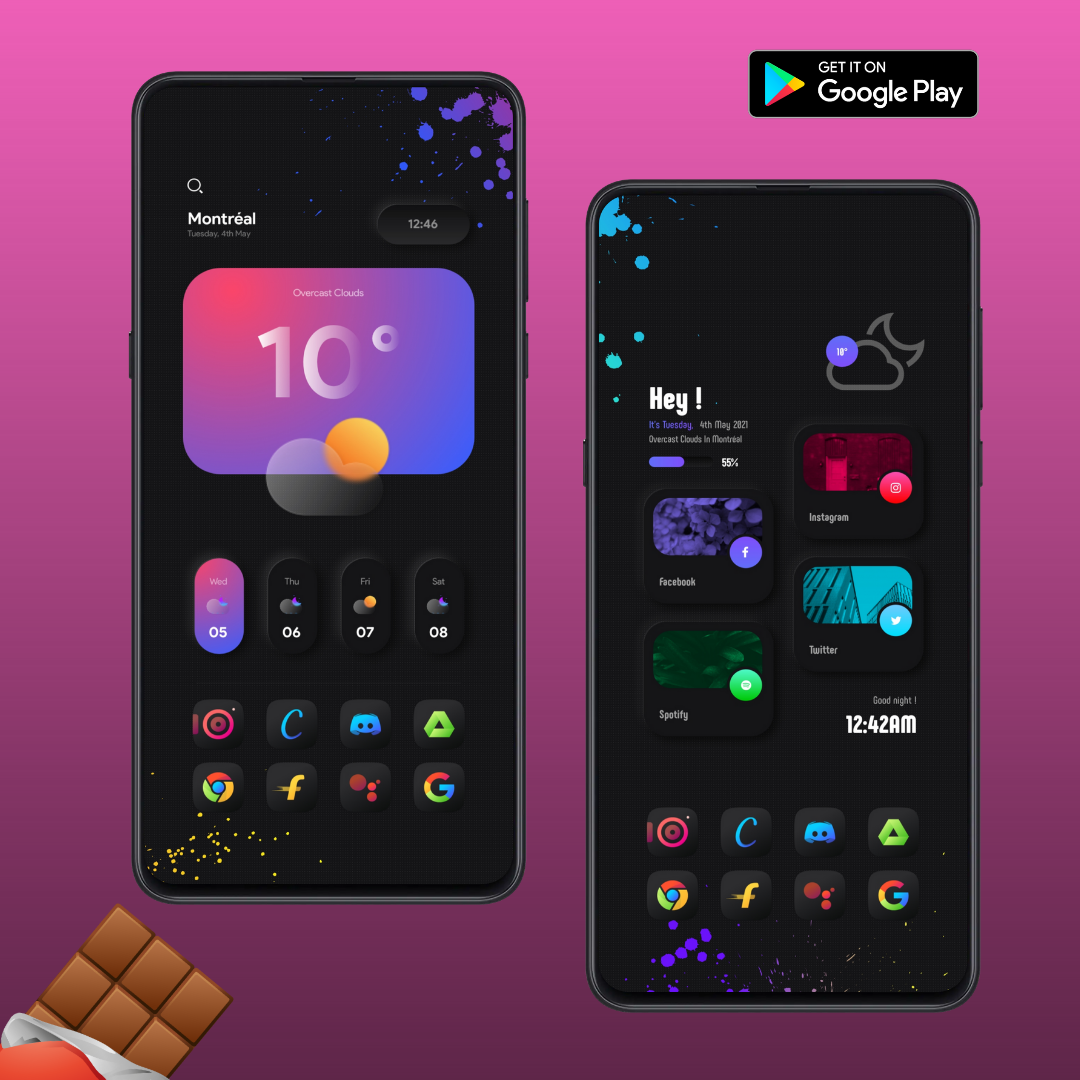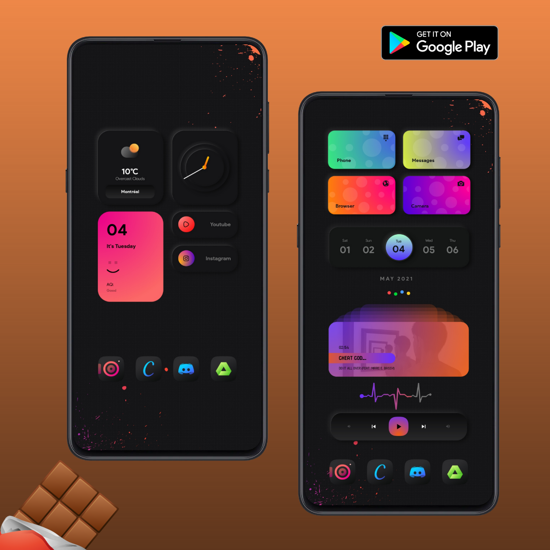 Chocolate KWGT – премиум-набор виджетов и иконок в шоколадно-сладкой теме. Ты получаешь пачку кастомных KWGT-виджетов с плавными анимациями где часы погода и плеер стилизованы под шоколадные батончики конфеты и кремовые текстуры. В типичном обновлении ты применяешь пресеты через KWGT тянешь обои с какао-бобами или тающими плитками настраиваешь цвета под тёмный или светлый режим и видишь как экран превращается в уютную кондитерскую. За пять минут ты можешь поставить виджет с часами в форме шоколадки добавить иконки приложений в виде конфет оформить док и почувствовать как телефон стал вкуснее и милее.
