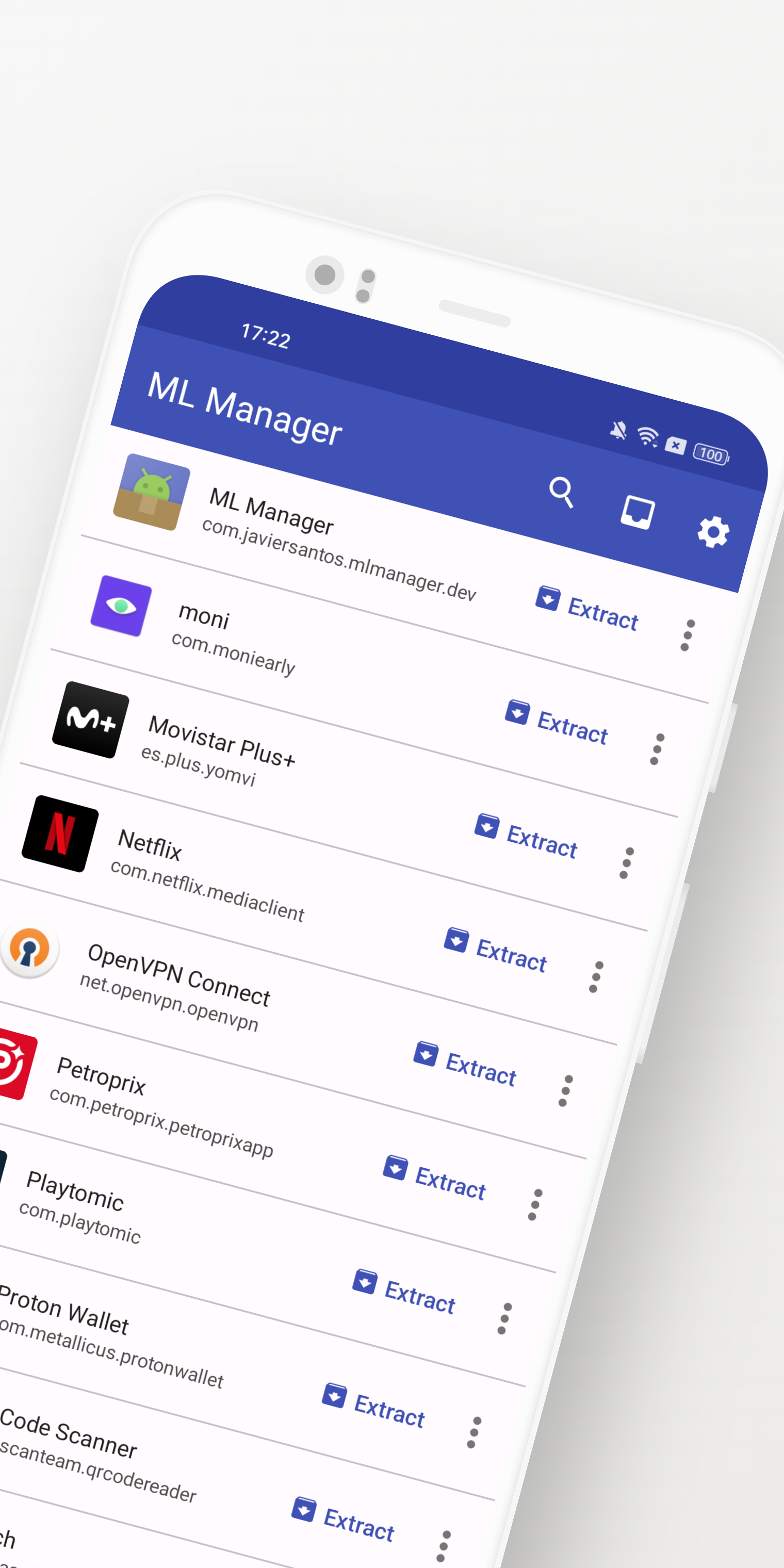 ML Manager Pro: APK Extractor – мощный менеджер APK для Android с root-функциями. Ты открываешь список установленных приложений выбираешь нужное тапаешь "Извлечь" получаешь чистый APK в папке. В типичном использовании ты извлекаешь игру делиться ею по Bluetooth или облаку создаёшь резервную копию перед удалением или экспортируешь системное приложение для модификации. За пять минут ты можешь вытащить 10 APK организовать их по папкам поделиться с другом и почувствовать полный контроль над установленным софтом. Это цепляет ведь процесс мгновенный без рекламы а root-режим открывает скрытые возможности заставляя возвращаться за новыми трюками.