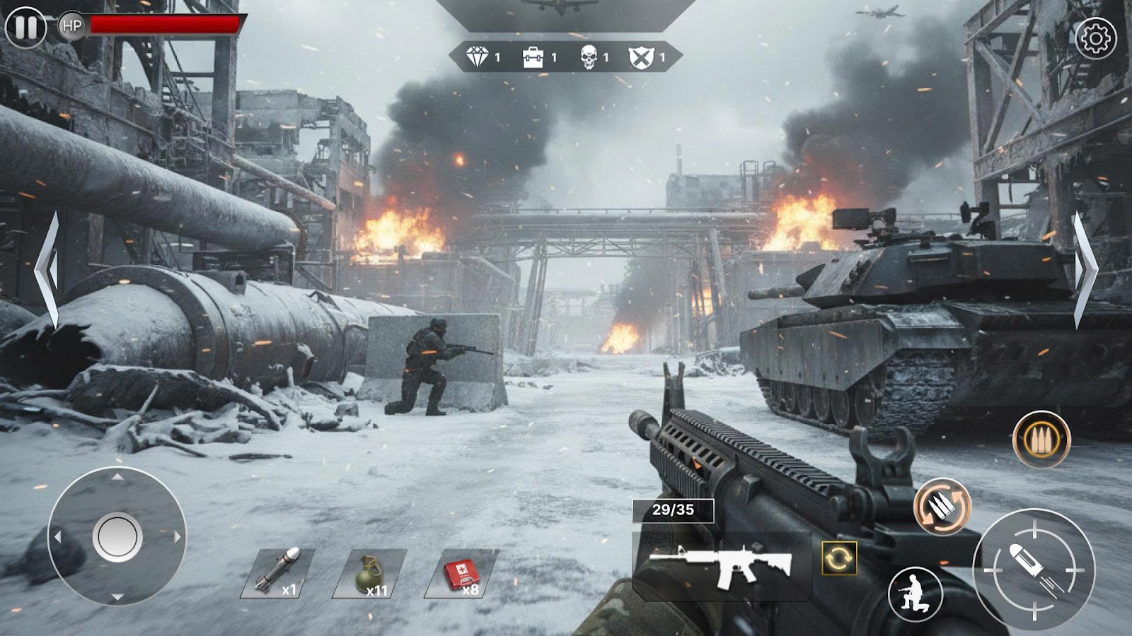 World War: Soldier Last Stand – выживалка-шутер в сеттинге ожесточённых битв на разных локациях. Ты берёшь роль солдата просыпаешься среди руин мчишься вперёд стреляешь очередями собираешь оружие от пистолетов до пулемётов отбиваешь волны противников. За пять минут ты прорываешься через квартал разносишь группу врагов подберёшь гранатомёт почувствуешь адреналин и ощутить вкус прогресса в хаосе боя. Это цепляет ведь каждый выстрел меняет тактику а локации полны неожиданных засад.