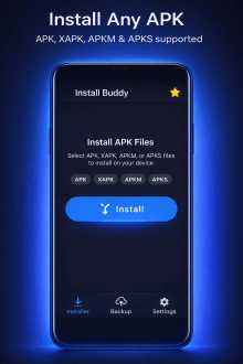 Install Buddy – самый простой установщик пакетов Android где ты берёшь любой файл и ставишь его мгновенно. Ты открываешь приложение выбираешь APK XAPK APKM или APKS из памяти тапаешь "Установить" и видишь как процесс идёт без меню или подтверждений. За пять минут ты можешь установить 5-10 файлов протестировать на XAPK с OBB почувствовать скорость и ощутить как телефон принимает любой пакет без головной боли. Это цепляет ведь всё одним касанием без сложностей заставляя использовать для всех скачанных файлов.