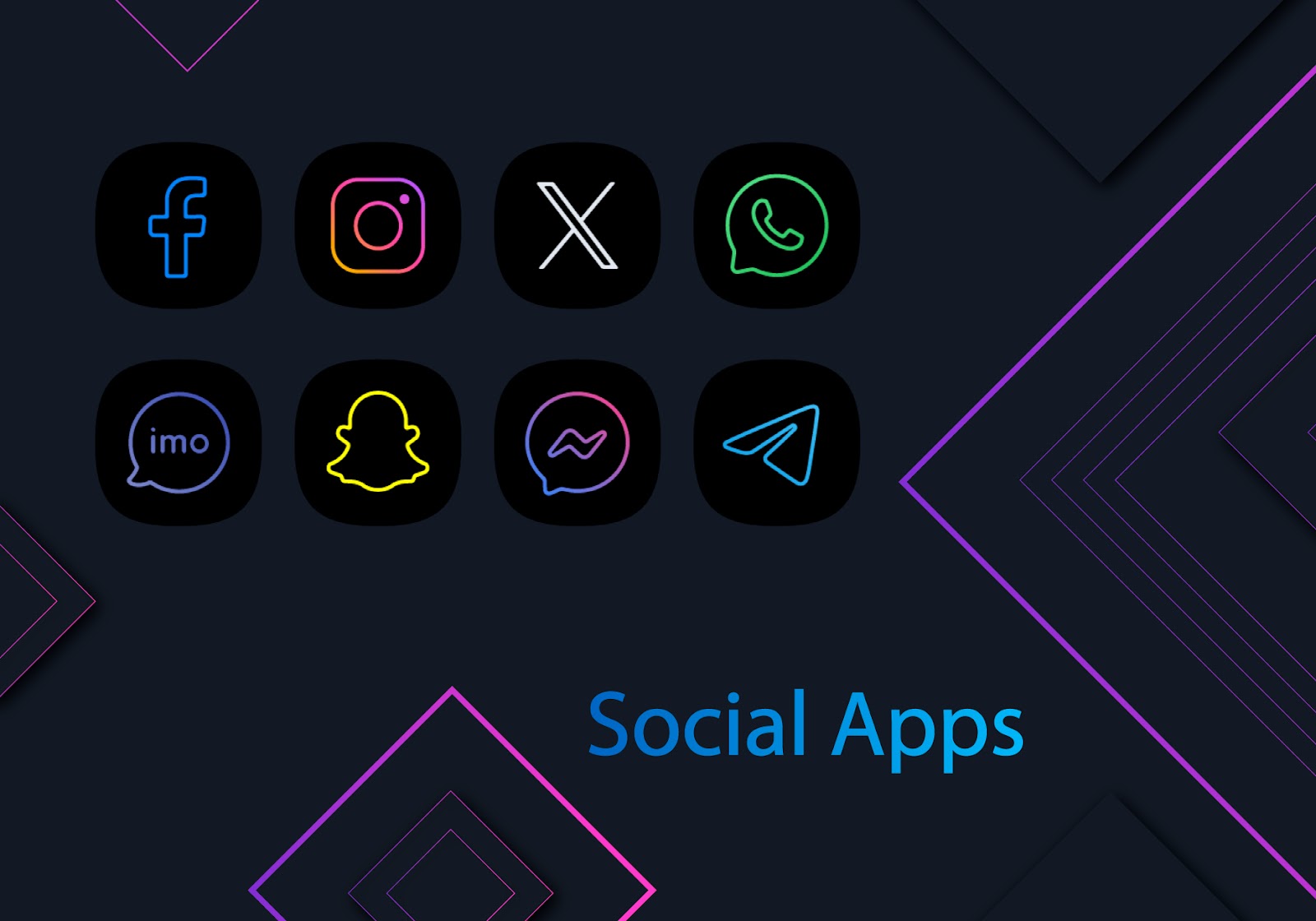 Оформи телефон футуристическими иконками с яркими градиентами и неоновым стилем