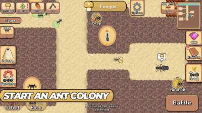Игра начинается с маленького гнезда и нескольких муравьев. Постепенно, копая тоннели и создавая новые комнаты, вы будете увеличивать свое пространство. Но помимо строительства, игроку придется заботиться о добывании пищи, ведь без нее муравьи не смогут развиваться. Для этого вам придется отправляться на поиски сокровищ в виде кусочков еды, сладостей или даже других насекомых.