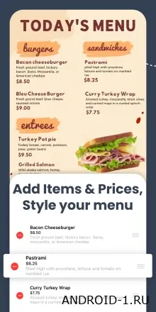 Ты получаешь мощные бесплатные инструменты для редактирования где можно свободно менять стиль оформления добавлять фотографии блюд и создавать особое впечатление у гостей. Приложение позволяет сохранять готовые меню и быстро их обновлять когда меняется ассортимент. Ты экспериментируешь с дизайном растешь в удобстве создания меню и наслаждаешься тем как твоё заведение выглядит современно и привлекательно. Попробуй сам и сделай своё меню настоящим украшением ресторана.