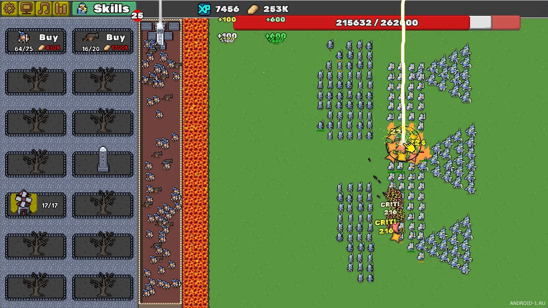 v1.0.0В Zero Stress King: Idle Defense традиционный жанр Tower Defense превращается в по-настоящему расслабляющее и приятное занятие. Волны врагов продолжают наступать на ваши стены, но благодаря бесконечному потоку лавы большинство из них уничтожается ещё на подходе, не доходя до обороны. Вам не нужно постоянно нервничать и реагировать на каждую угрозу — вместо этого вы можете спокойно сосредоточиться на развитии своей крепости, покупке новых защитников и улучшении производства ресурсов.