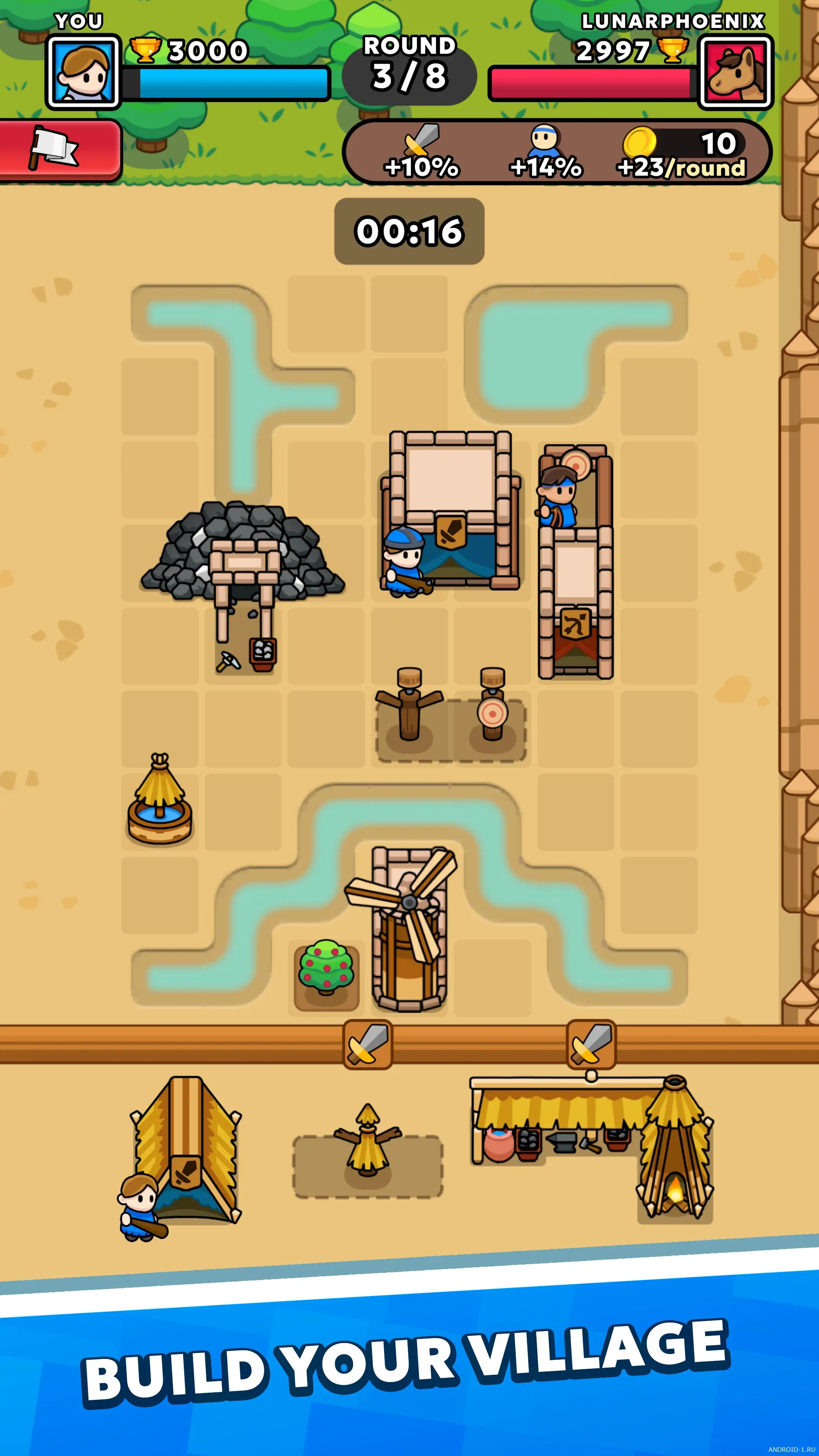 v1.5.1Siege Arena: Build & Fight! — это захватывающая стратегическая игра где ты строишь и защищаешь свою деревню от соперников. Ты размещаешь уникальные здания которые призывают мощных юнитов с особыми способностями и усиливают твою армию. Ты выбираешь между юнитами ближнего боя дальнего боя верховой езды и осады и комбинируешь их чтобы создать идеальную оборону и атаку.