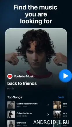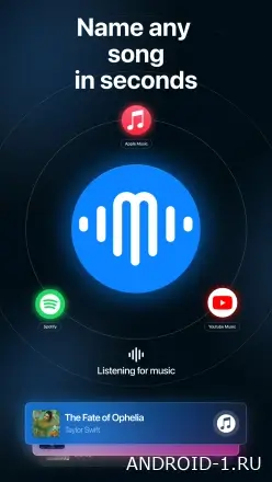 v1.3.2Song Finder: Music Identifier — это быстрый и удобный определитель музыки который помогает распознать любую песню играющую вокруг тебя. Ты просто включаешь приложение подносишь телефон к источнику звука и за считанные секунды получаешь название трека имя исполнителя и другую информацию. За пять минут ты можешь найти песню которая застряла в голове или играет на фоне в магазине кафе или на улице.