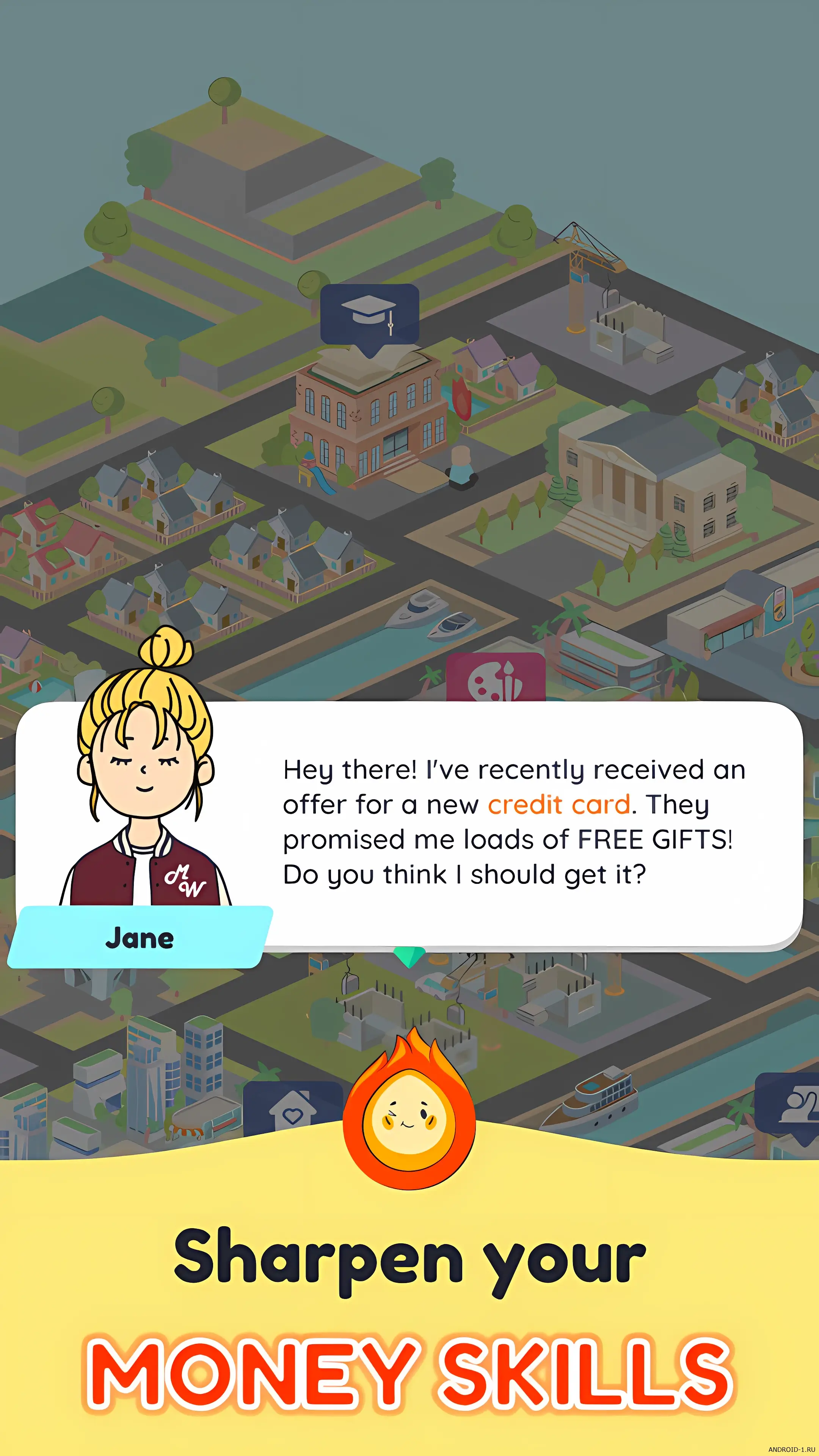 v1.1.1Money Wise Game — это весёлый и полезный симулятор жизни где ты проживаешь последний год в старшей школе и учишься принимать важные финансовые решения. Ты сталкиваешься с реальными жизненными ситуациями делаешь выбор и сразу видишь долгосрочные последствия своих действий. За пять минут ты можешь пройти несколько дней в игре принять несколько решений и почувствовать как твои финансы и жизнь начинают меняться.