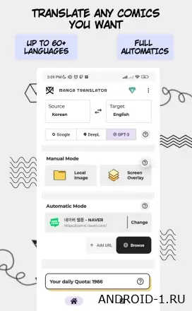 v3.0.2Manga Translator — удобное приложение которое помогает читать любимую мангу на родном языке. Ты загружаешь страницы или открываешь онлайн-версию и приложение автоматически переводит текст с японского прямо на экран. За пять минут ты можешь начать чтение новой главы понять сюжет и насладиться историей без необходимости искать готовый перевод или учить язык.