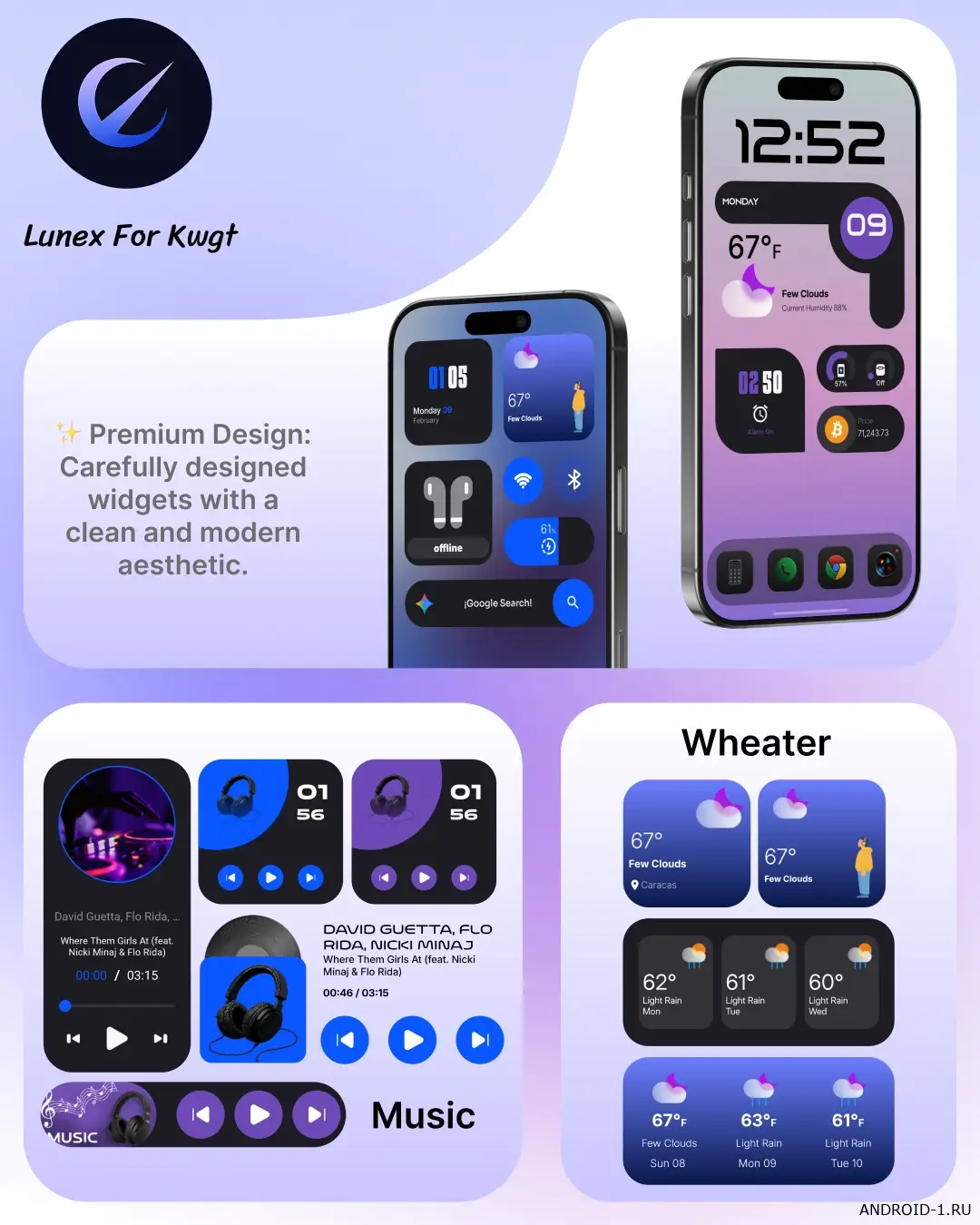 v1.1Lunex For KWGT — это пакет виджетов который помогает быстро и красиво преобразить твой домашний экран. Ты выбираешь подходящие виджеты из коллекции и размещаешь их на экране чтобы сразу увидеть как телефон становится современнее и выразительнее. За пять минут ты можешь настроить несколько виджетов добавить новые обои и почувствовать насколько интерфейс стал гармоничным и приятным.