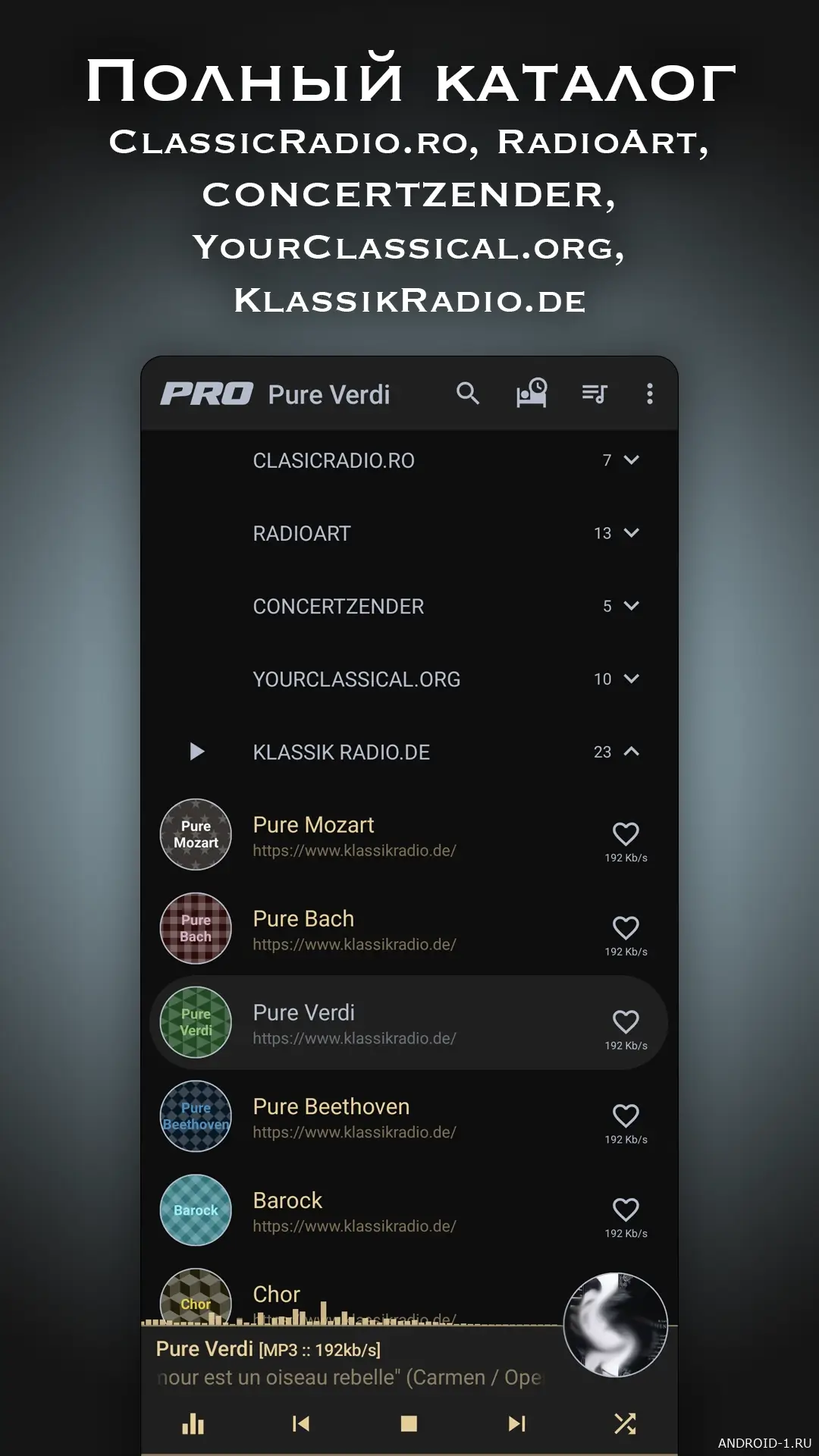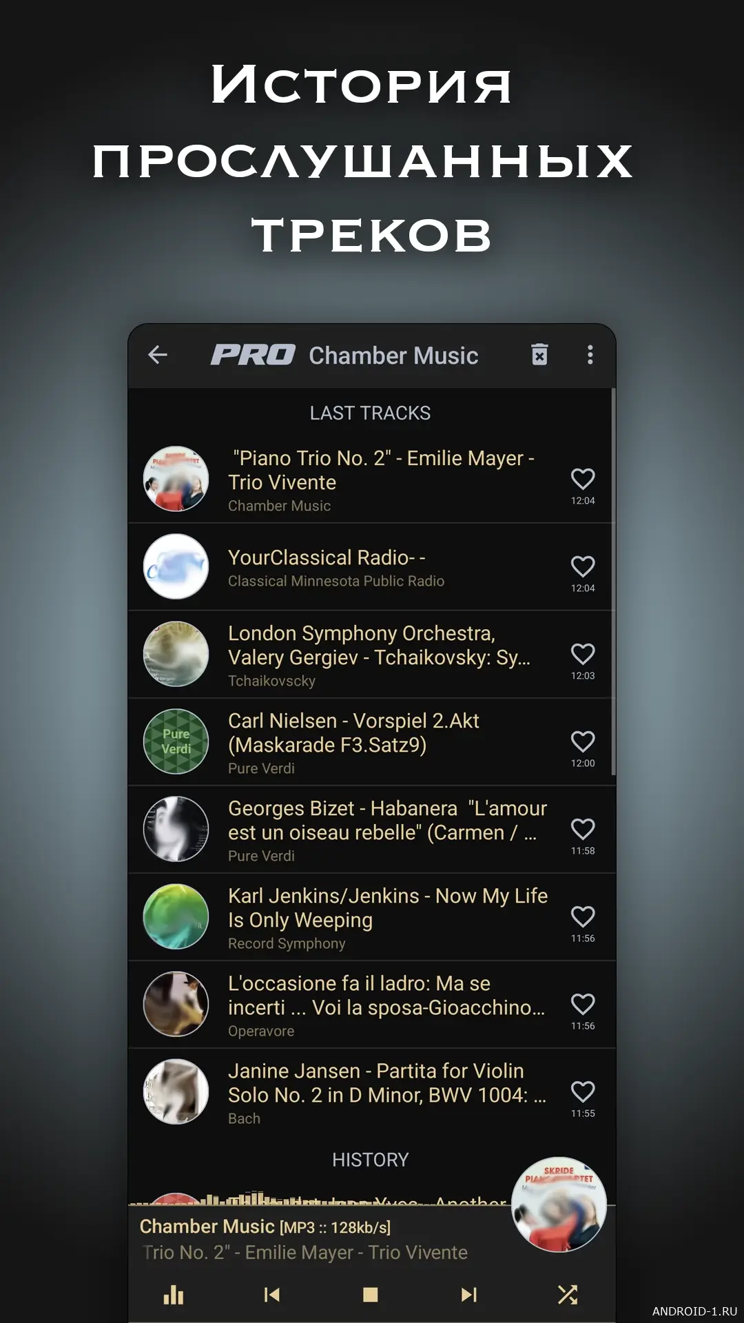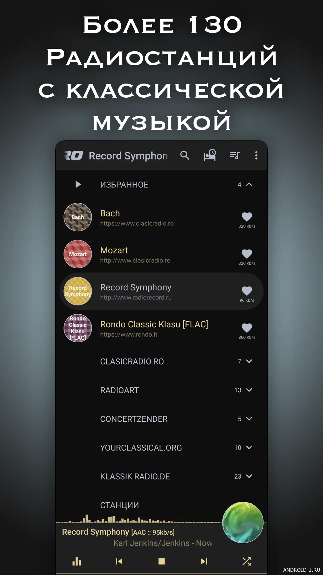 v6.3.1 GPРадио с классической музыкой — это спокойный и качественный плеер который открывает доступ к огромной библиотеке произведений великих композиторов. Ты выбираешь любимого автора или произведение и наслаждаешься чистым звучанием без посторонних шумов и раздражающих помех. За пять минут ты можешь найти нужную симфонию или концерт и полностью погрузиться в атмосферу классической музыки.