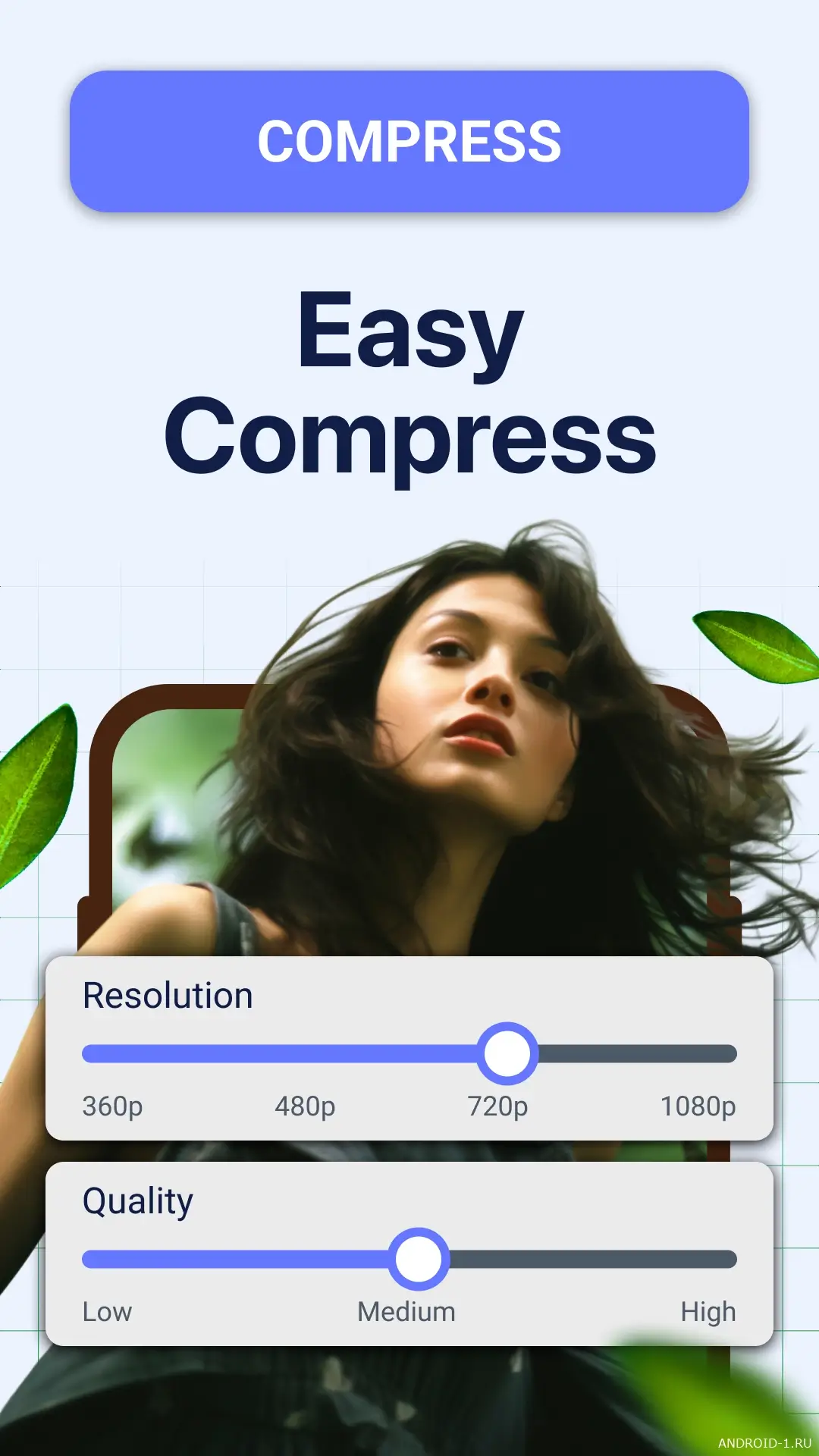 v1.4.3V9 Compress — простой и очень быстрый видеокомпрессор который помогает легко уменьшить размер видео без сильной потери качества. Ты выбираешь ролик настраиваешь степень сжатия и приложение быстро обрабатывает файл чтобы он занимал гораздо меньше места.