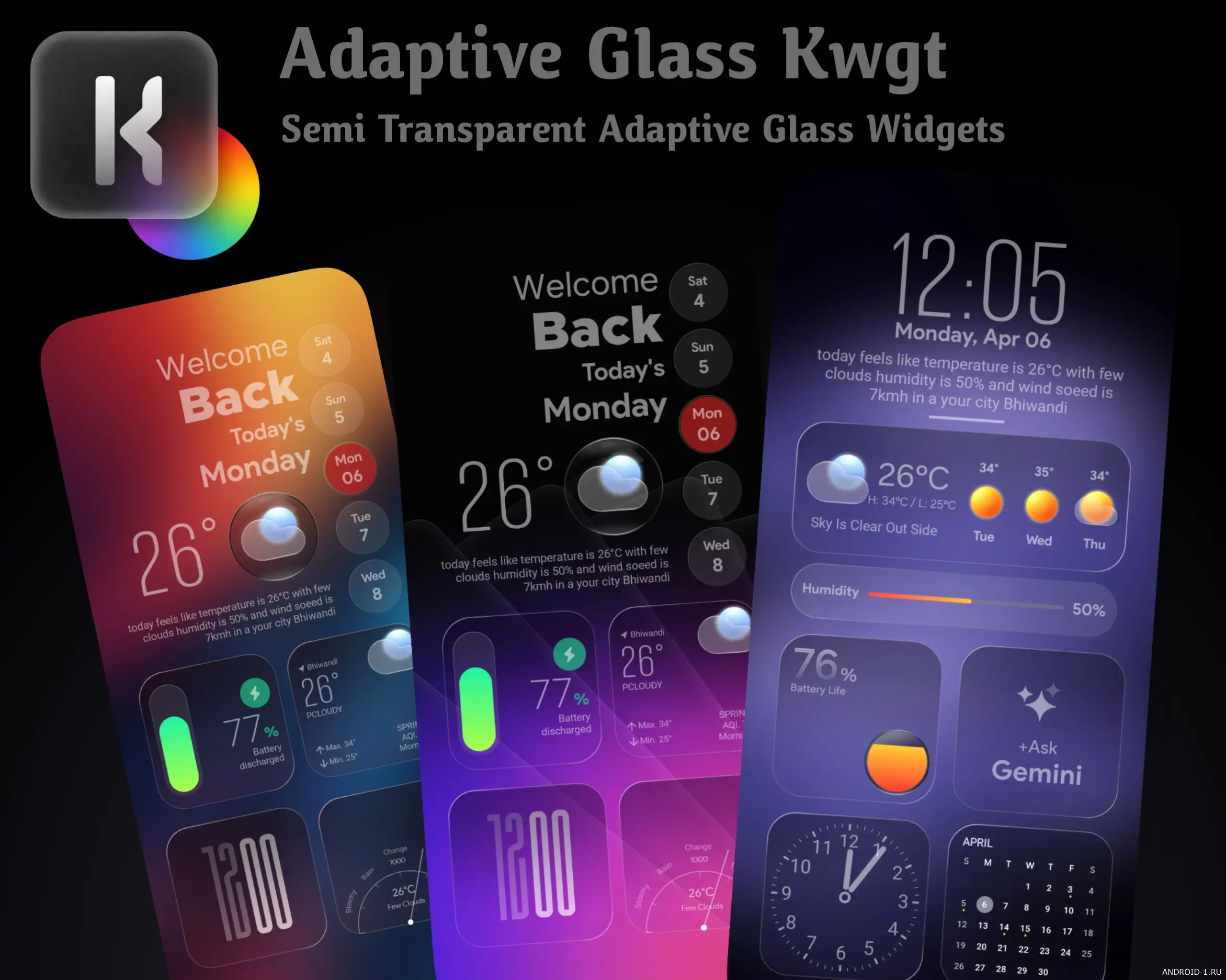 Скачать Adaptive Glass KWGT (Полная версия) v1.0.1 MOD APK