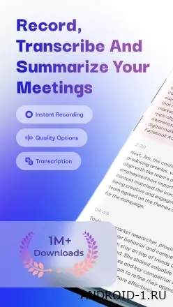 v4.7.48Voice Recorder & AI Transcribe — удобное приложение для записи звука с мощной функцией искусственного интеллекта, которое превращает ваши разговоры, идеи и совещания в текст.