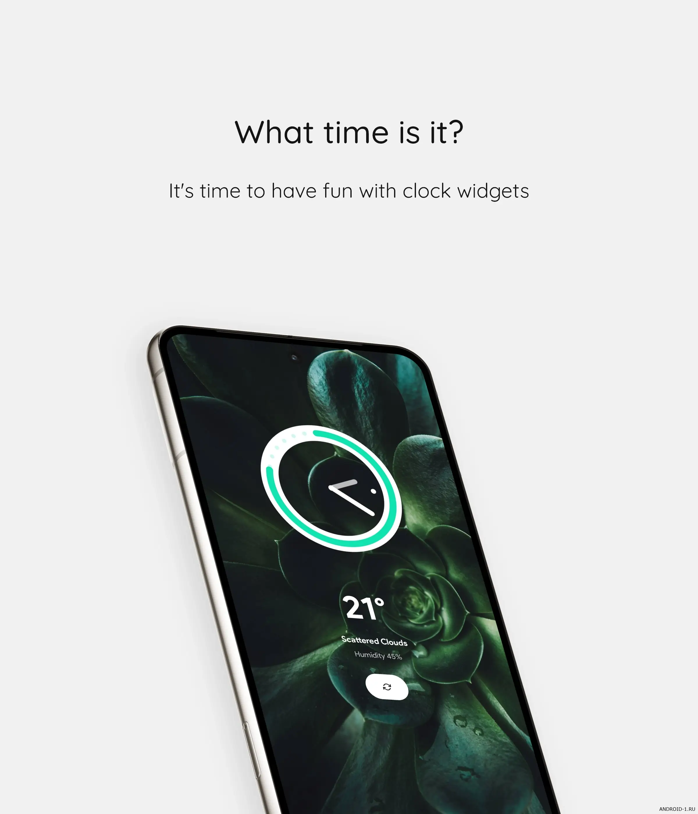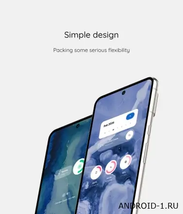 Здесь нет лишних деталей — только изящные линии, продуманные пропорции и приятная минималистичная эстетика. Особенно хорошо смотрятся виджеты погоды, часов и батареи, которые создают ощущение простора и профессионализма. Приложение сочетает современный подход к дизайну с удобством использования, сохраняя знакомый язык Material Design, но делая его более лёгким и утончённым. Попробуй сам и почувствуй, как твой экран становится спокойнее и красивее.