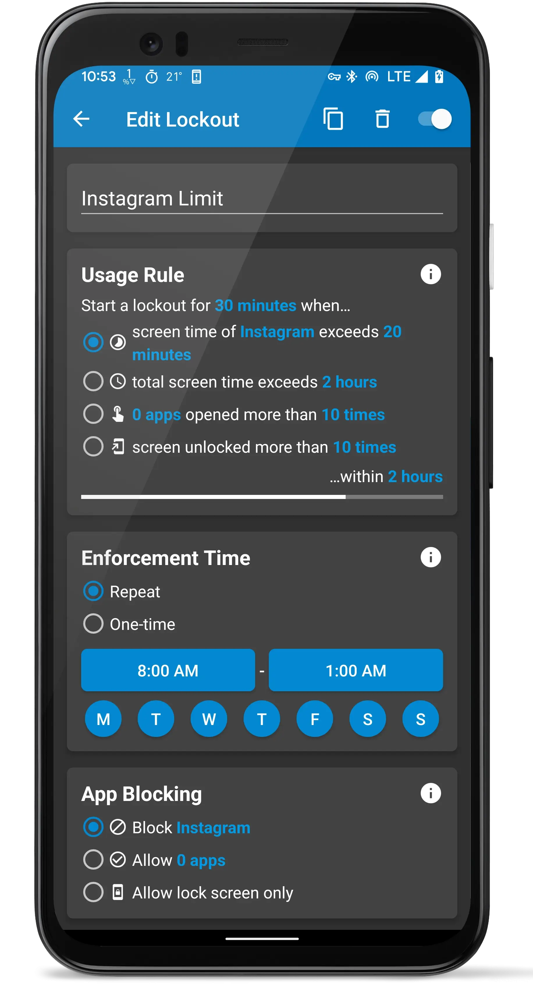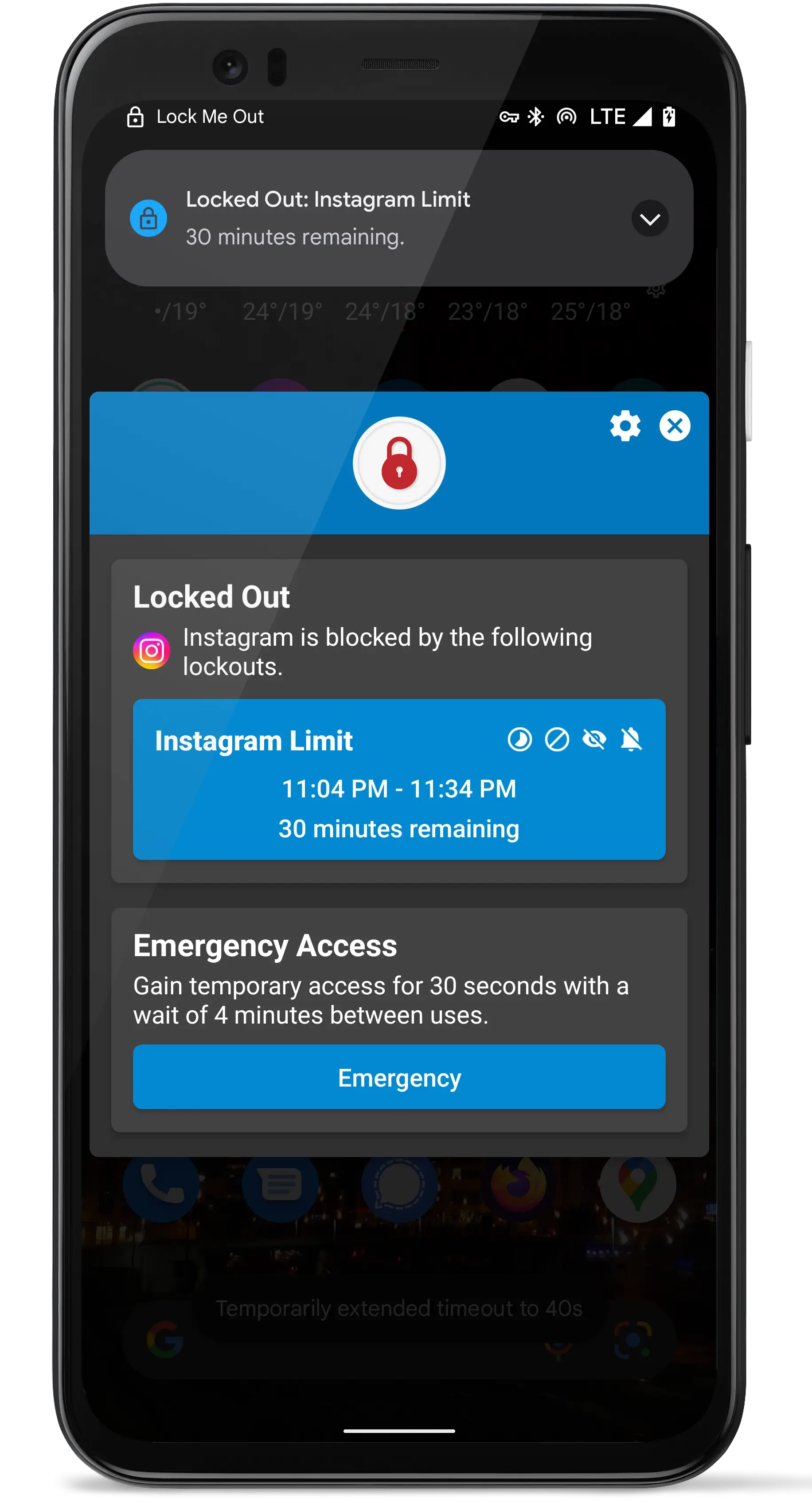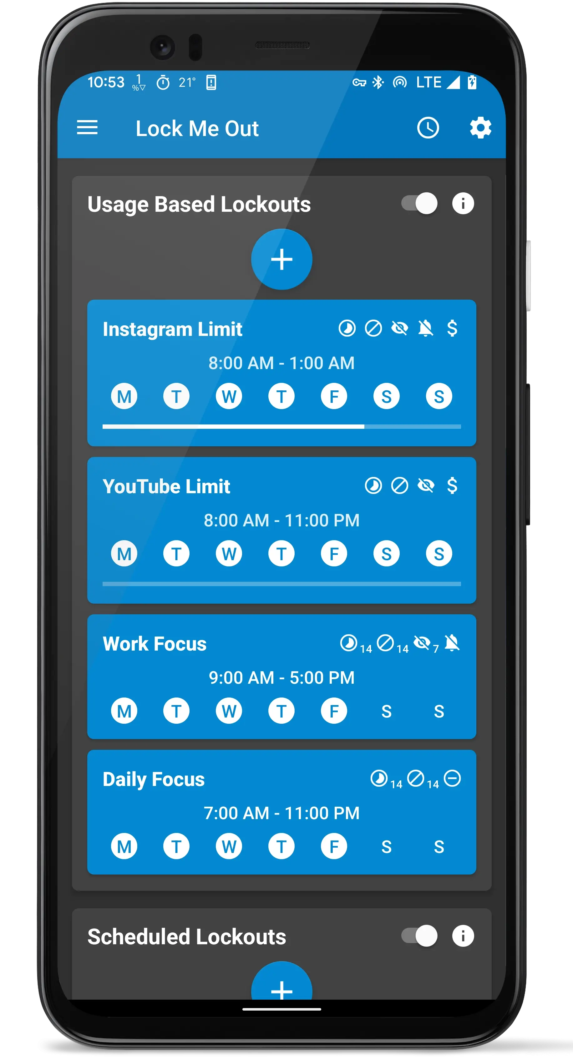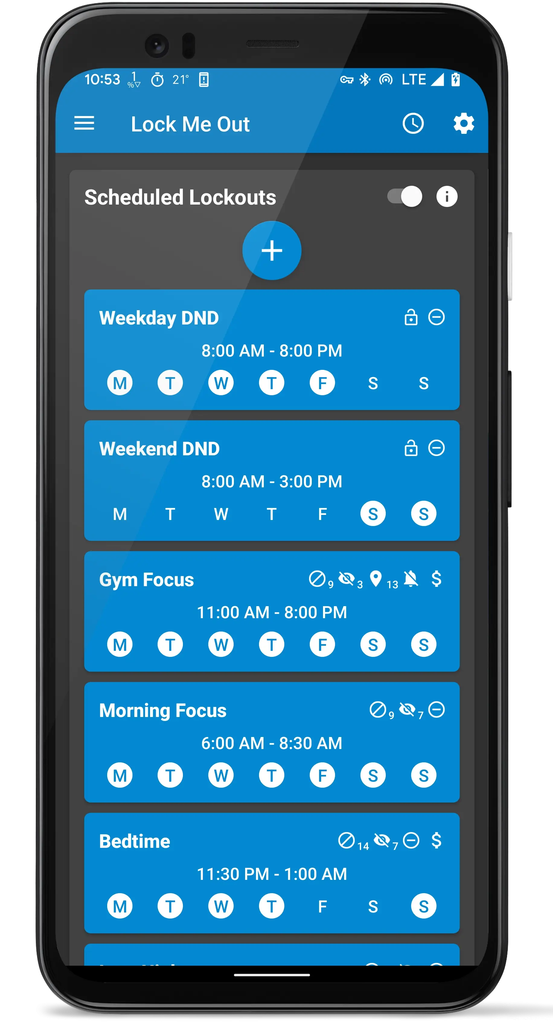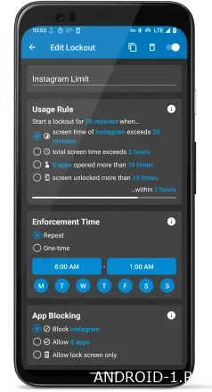 v7.3.2Lock Me Out — верни себе контроль над временем. Если социальные сети и бесконечный скроллинг отнимают слишком много времени, Lock Me Out – App/Site Blocker поможет изменить ситуацию.