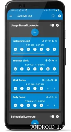 Приложение позволяет надёжно блокировать отвлекающие приложения и сайты, помогая сосредоточиться на важных делах — работе, учёбе или просто спокойном отдыхе. Ты сам задаёшь правила и расписание блокировок, чтобы постепенно формировать более здоровые цифровые привычки. С мощными инструментами управления временем Lock Me Out делает процесс простым и эффективным. Ты начинаешь лучше распоряжаться своим днём и чувствуешь, как возвращается баланс и свобода. Попробуй сам и почувствуй, как меняется жизнь, когда телефон перестаёт отвлекать.