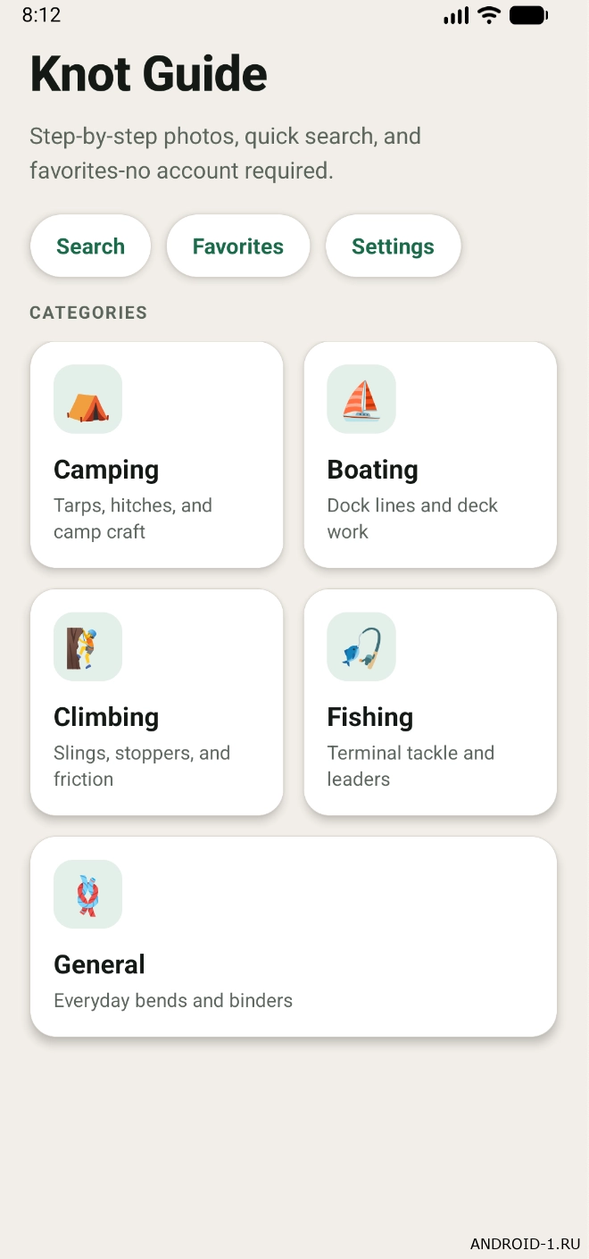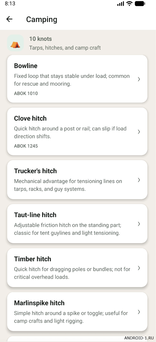 v1.0.6Knots Guide поможет быстро освоить самые полезные узлы для рыбалки, кемпинга, альпинизма, парусного спорта и выживания в дикой природе.