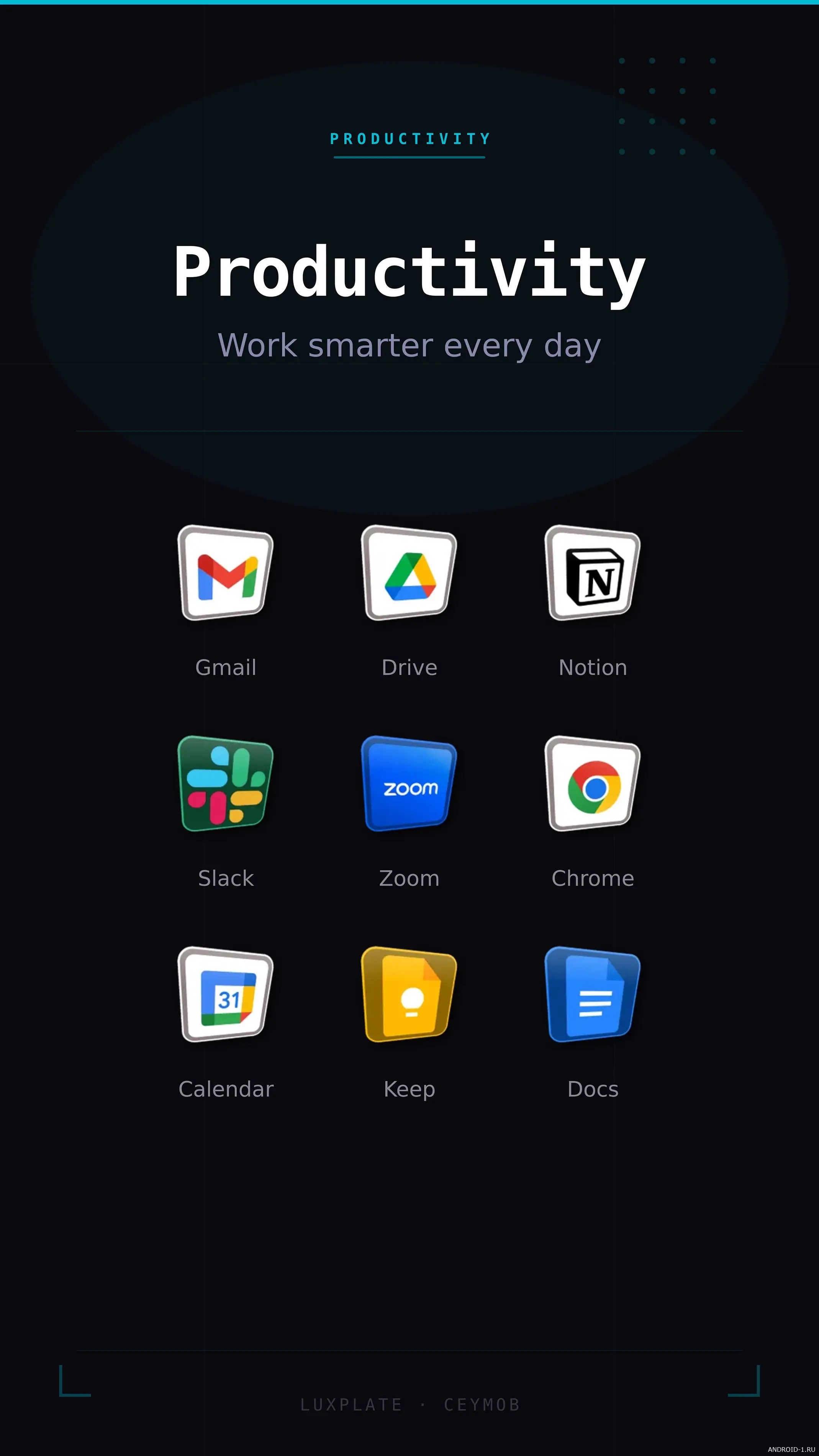Независимо от того, используешь ты приложение для продуктивности, игры или системные утилиты — все они будут выглядеть гармонично и органично в едином визуальном стиле. Luxplate помогает создать цельный и выразительный интерфейс, который радует глаз каждый раз, когда ты разблокируешь телефон. Если ты хочешь придать своему устройству премиальный и современный вид, этот набор иконок станет отличным выбором.
