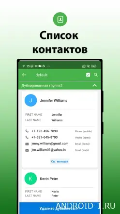 v8.1.1.19Duplicate Contact Fixer — удобное приложение, которое помогает за считанные секунды найти и удалить все повторяющиеся контакты на твоём устройстве. Больше не нужно вручную перебирать сотни или тысячи записей — программа автоматически сканирует список контактов и показывает все дубликаты, которые можно удалить одним нажатием.
